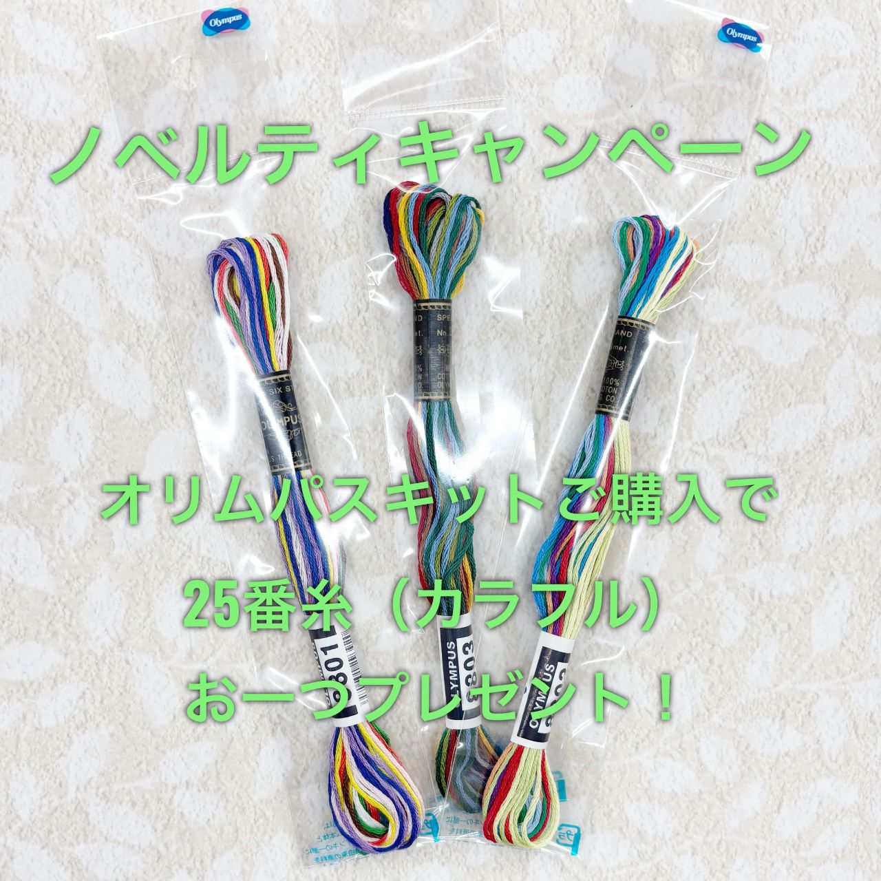 さらに!期間中オリムパス社のキットをご購入のお客様には、カラフルで可愛い25番糸の刺しゅう糸を1カセプレゼントのノベルティキャンペーンを開催中!!