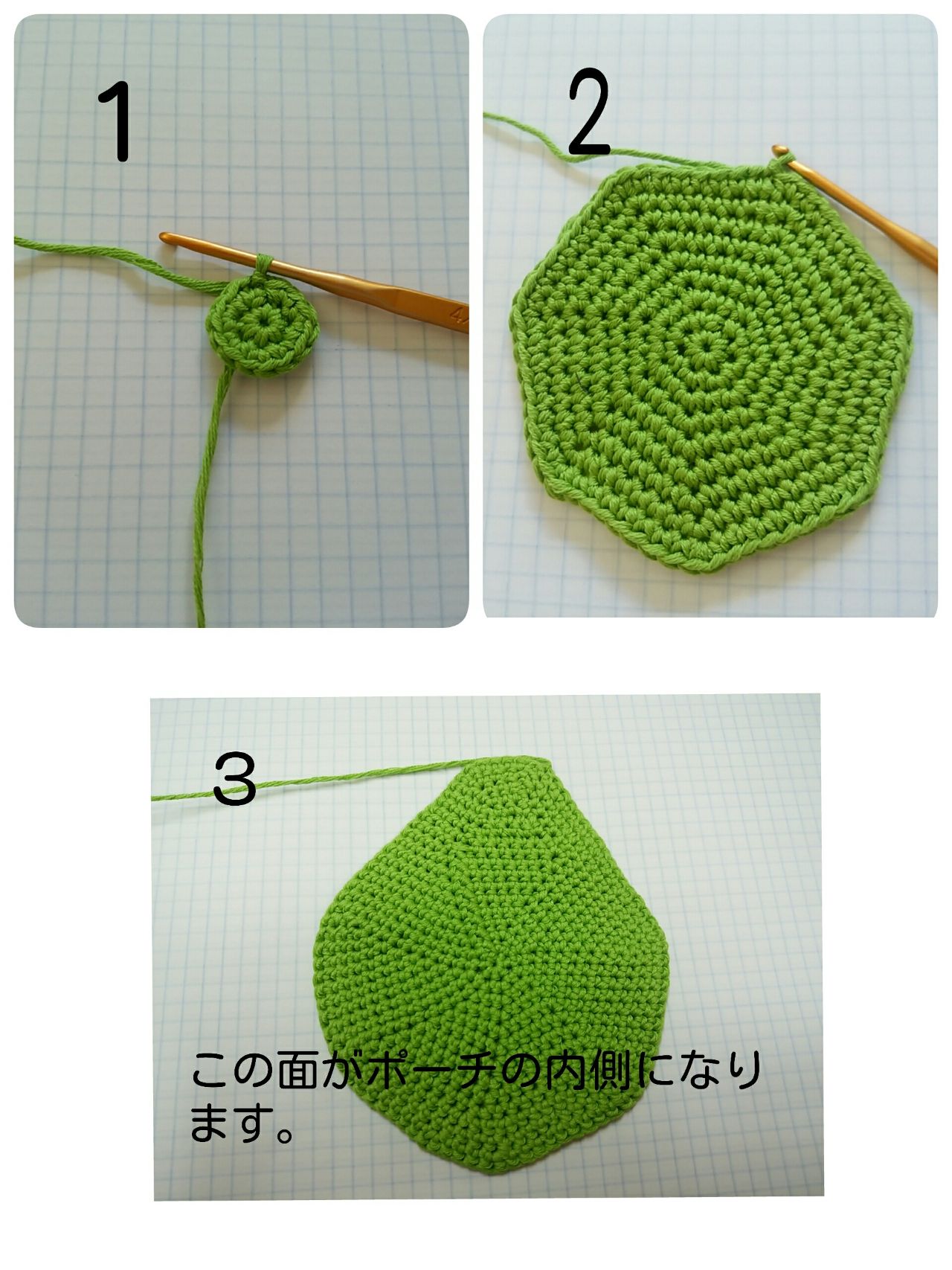 表側は『アボカドの種』感を出す為に『すじ編み』そして立ち上がり目を作らずに各段毎に増やし目して6段目まで編みます。