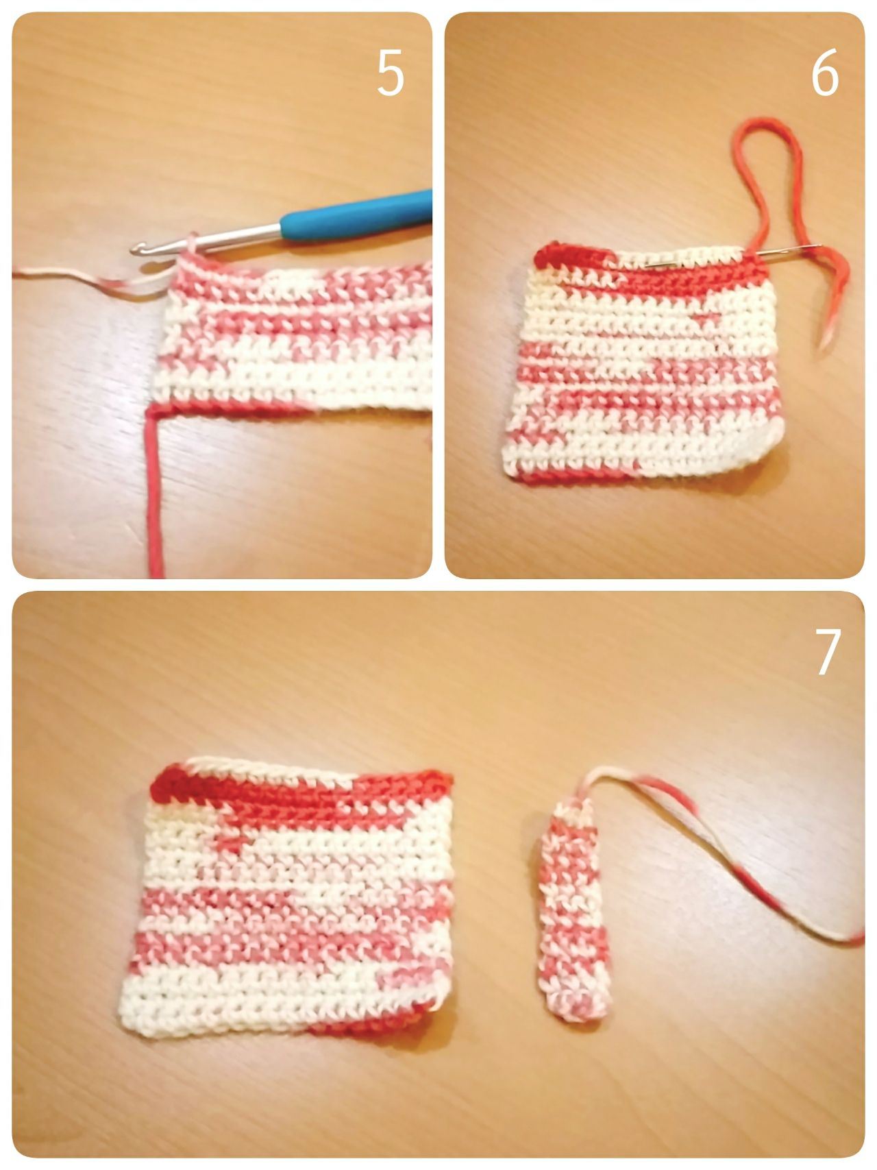 4.編み地を返して2段目からも同様に細編み16目編みます。