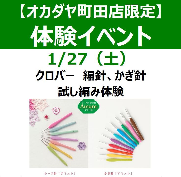 【1/27(土)】町田店体験イベント☆クロバー編み針試しあみ体験のご案内♪