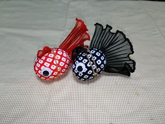 ちりめんで可愛い金魚のモビールを作りました!
