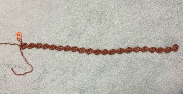 ①糸は、1本どりで、指定の配色で編みます。共糸鎖の作り目より編み始めます。