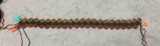 *毎段色を替えるので、休ませている糸にマーカーをつけておくと、編みやすいと思います。