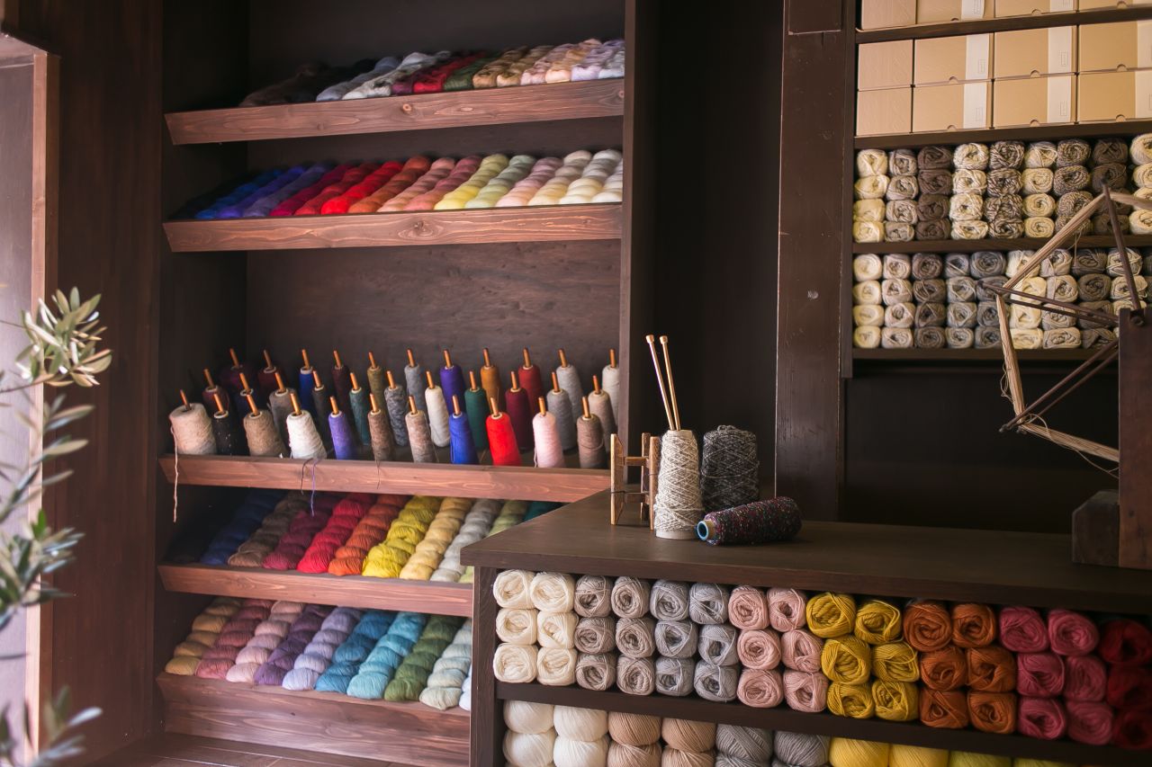 京都にある築80年を超える京町屋を改装した店内で300種類を超える手編みのオリジナル作品を販売しています。