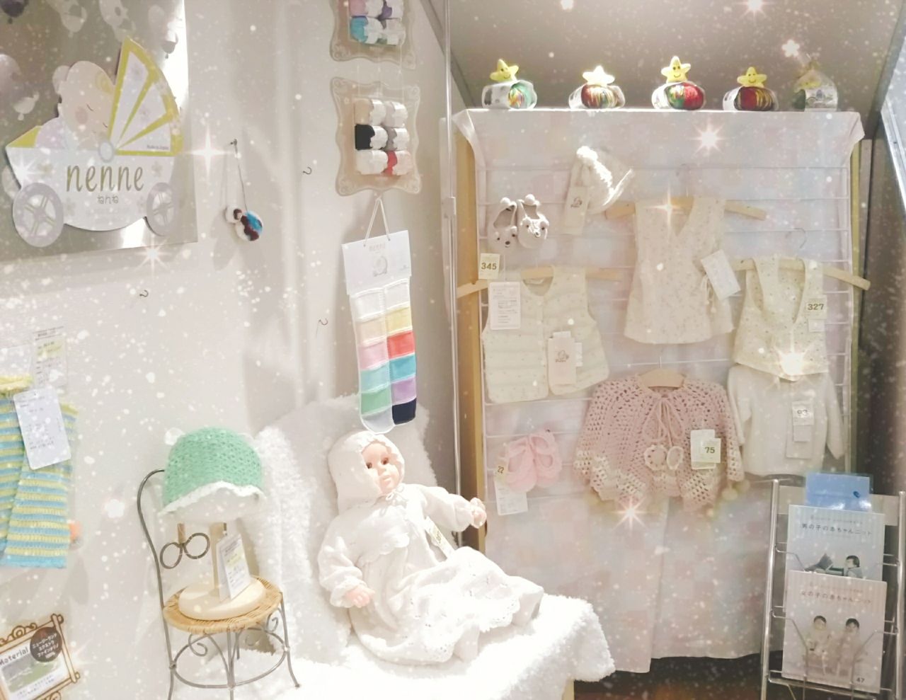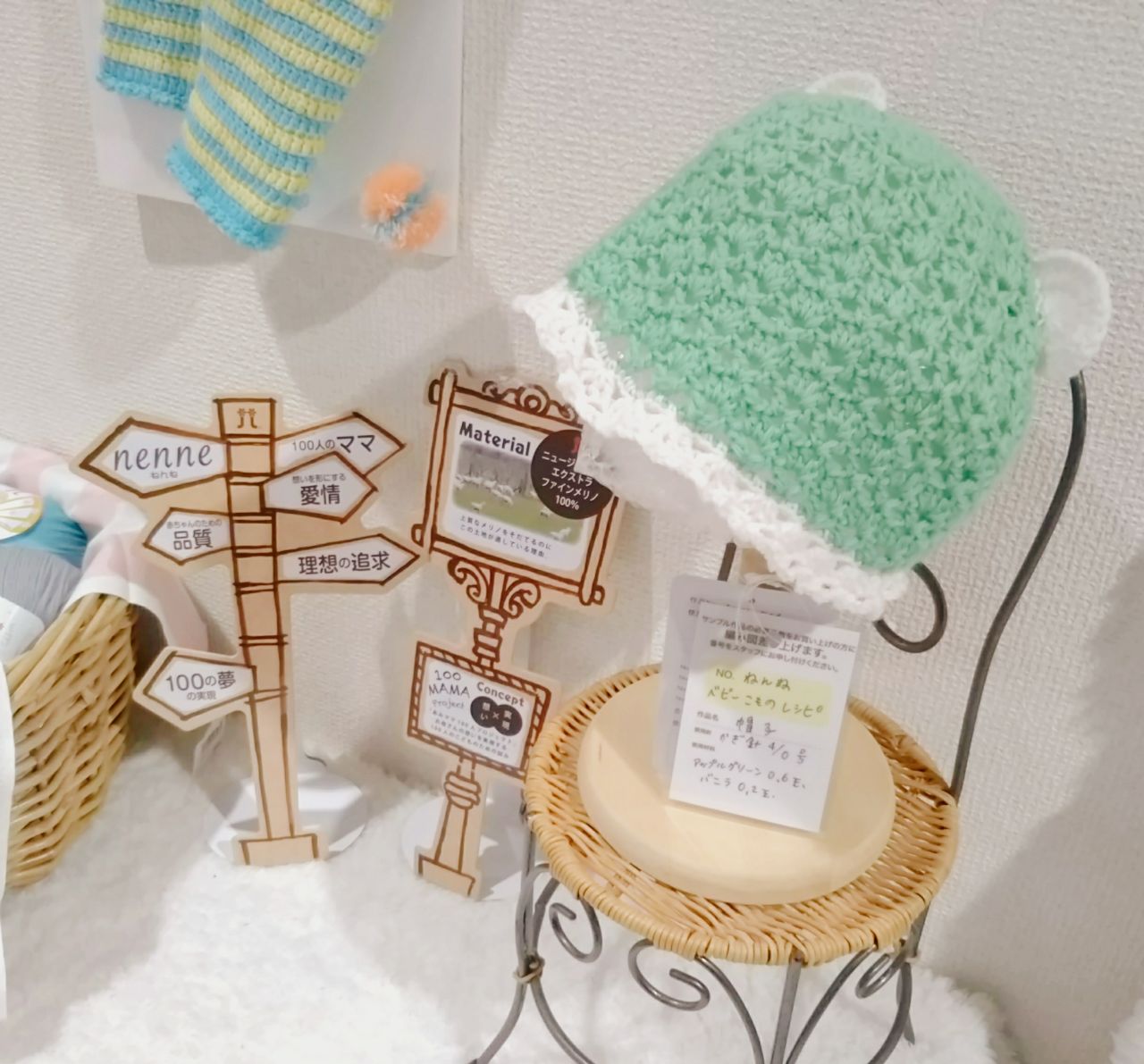 その他のベビーヤーンのウェアや小物の見本も展示中です。