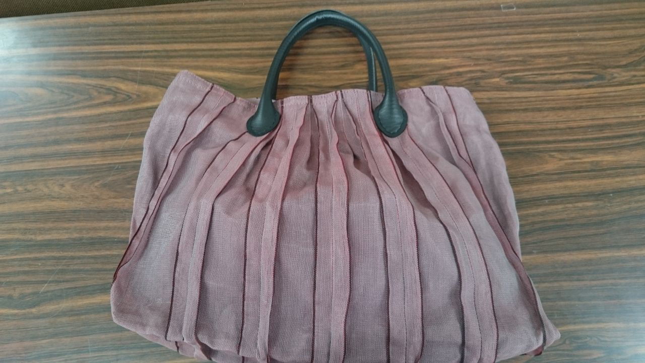 畳へりで、バックを作っているマダムが、