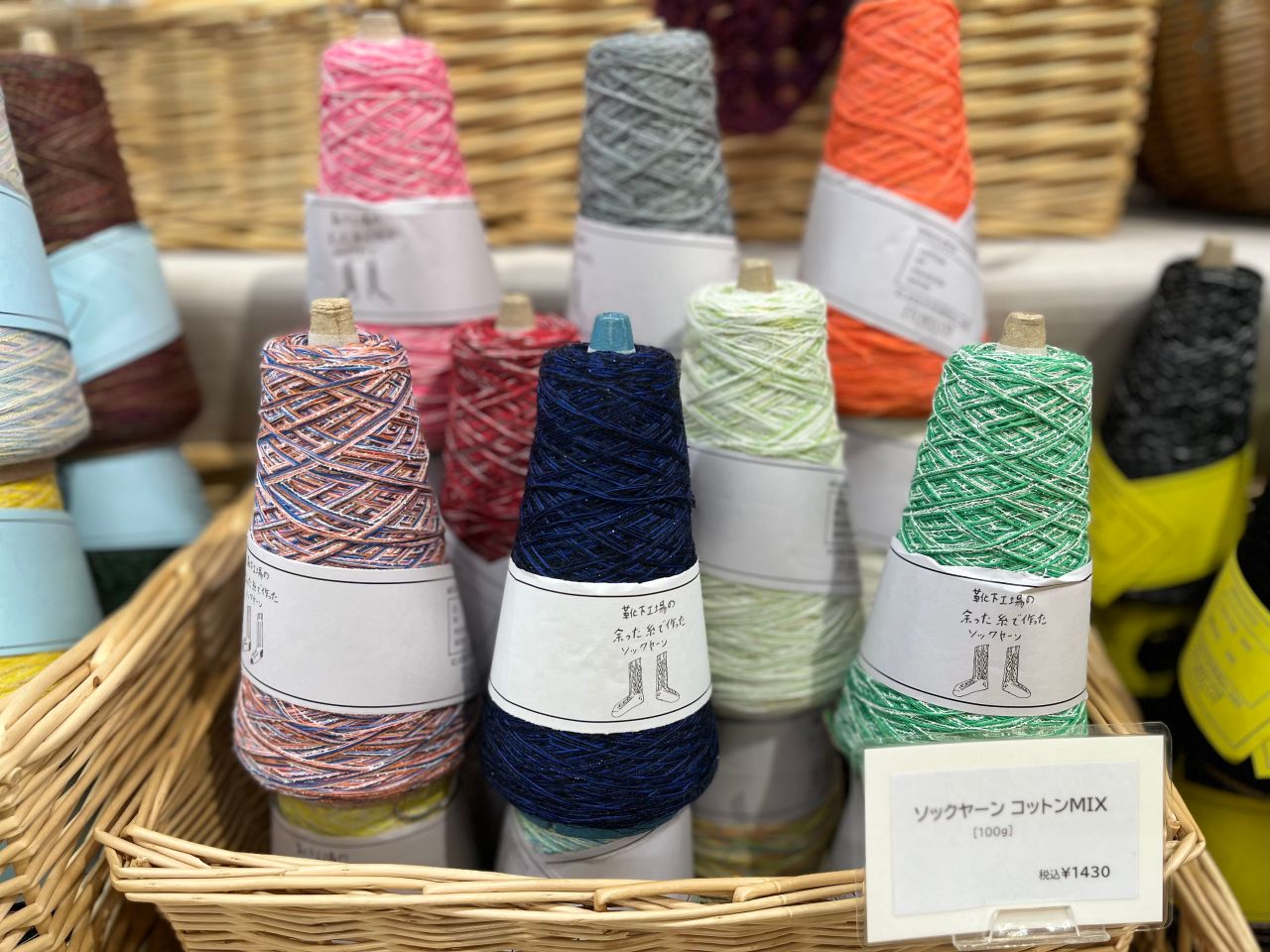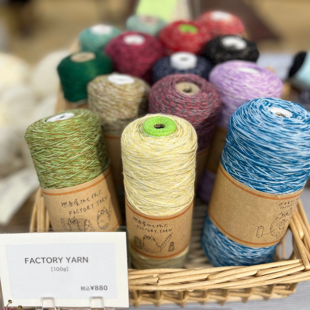 工業用に使われていた細番手の糸を中心に品揃えがあります。生産途中で出た工場残糸由来ということで、そのほとんどがコーン巻きの形状です。