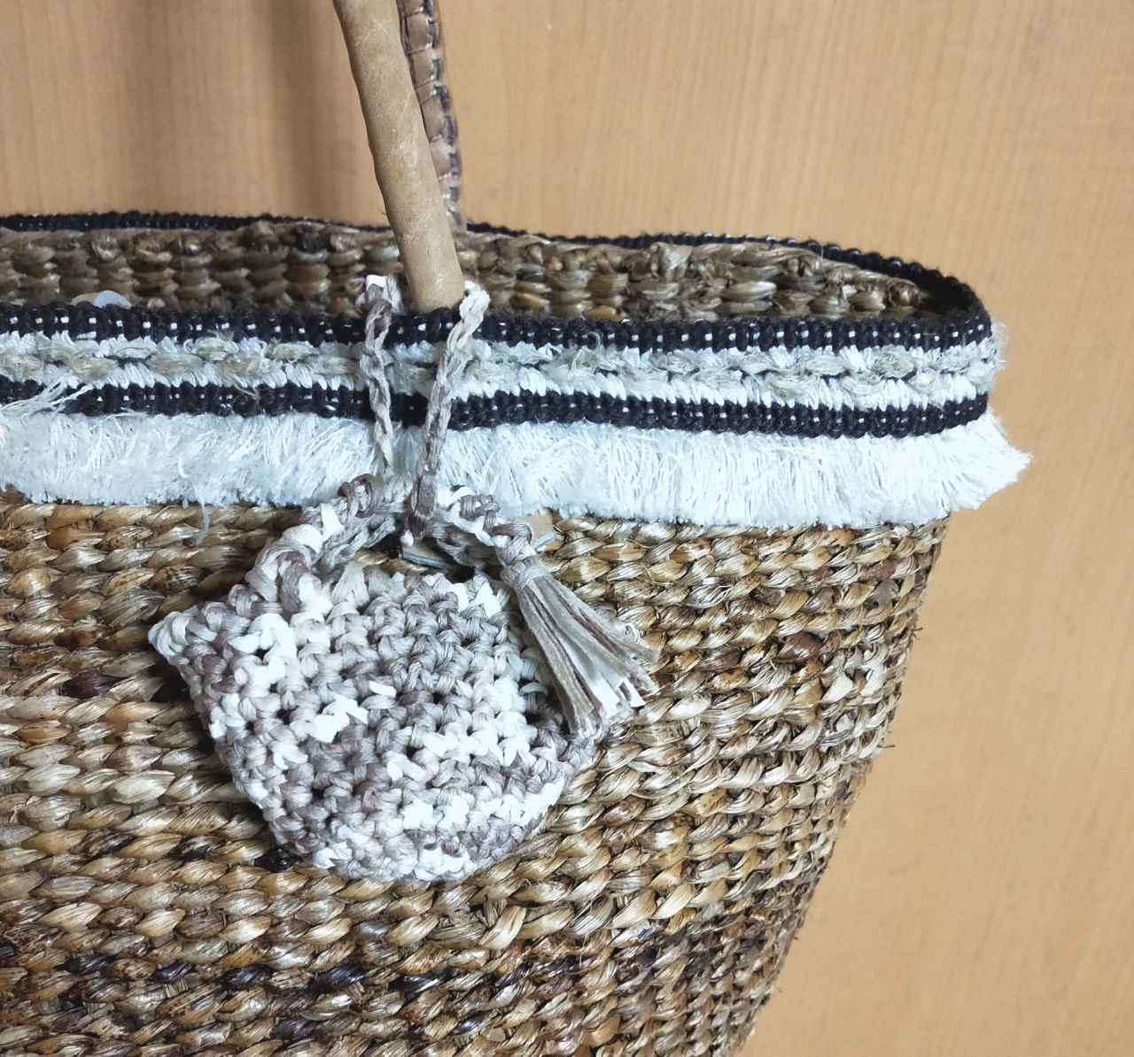 いつものバッグに、夏糸で編んだバッグのチャームで、夏らしさアップ!