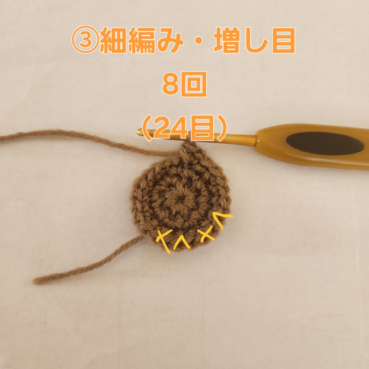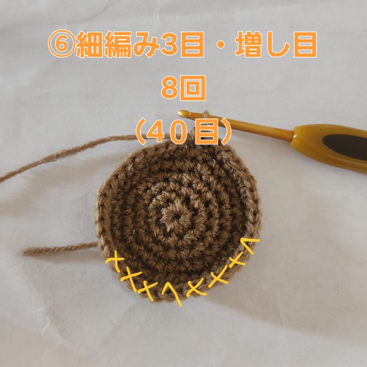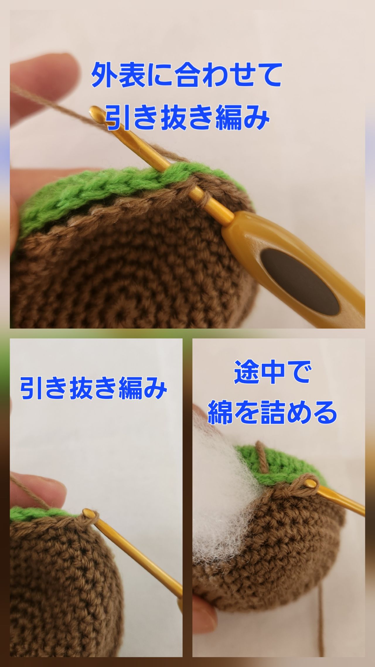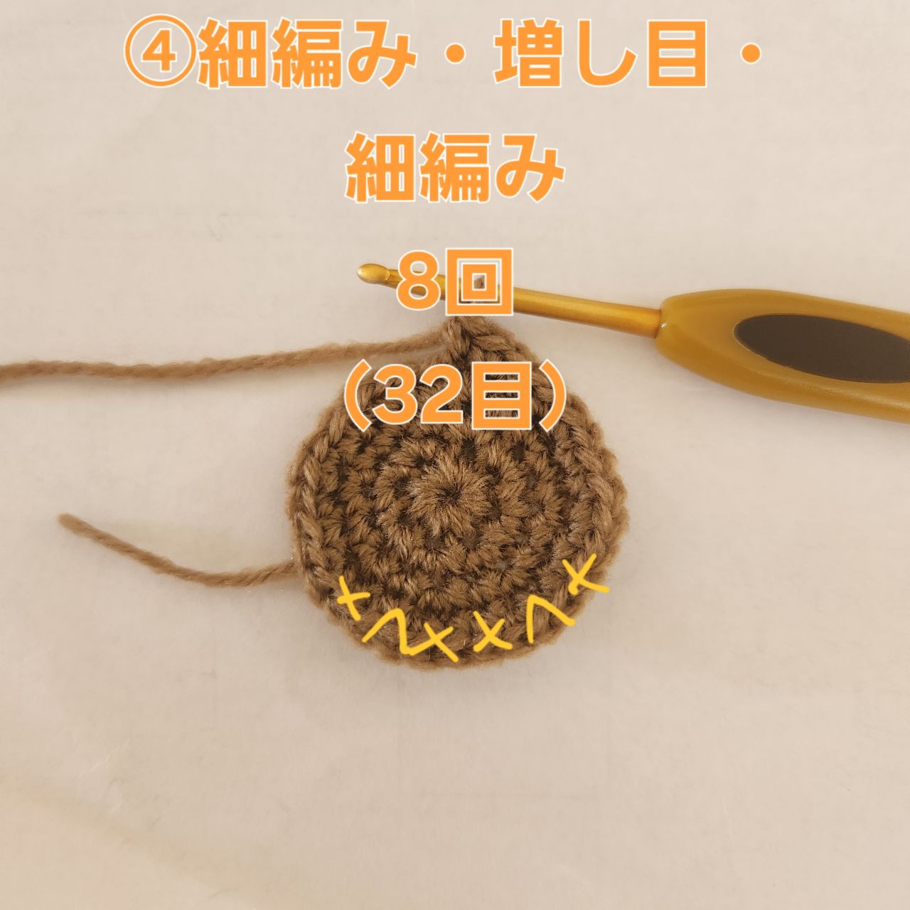 残しておいたうす茶の糸で引き抜き編みをしていく。