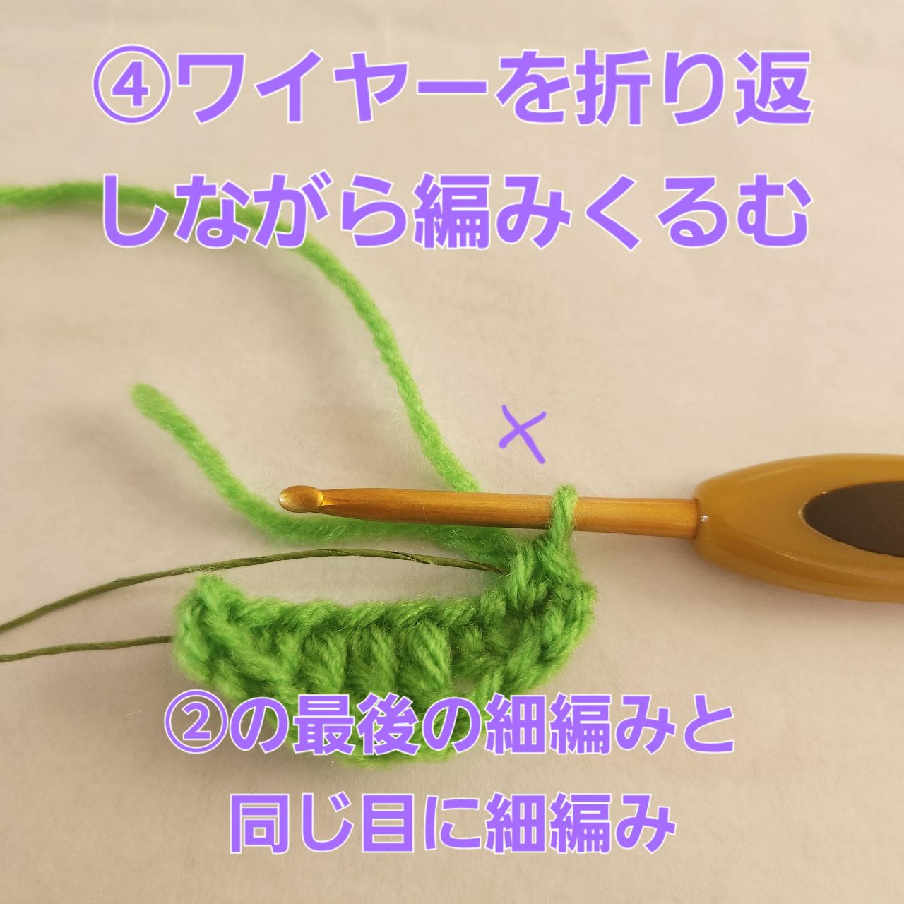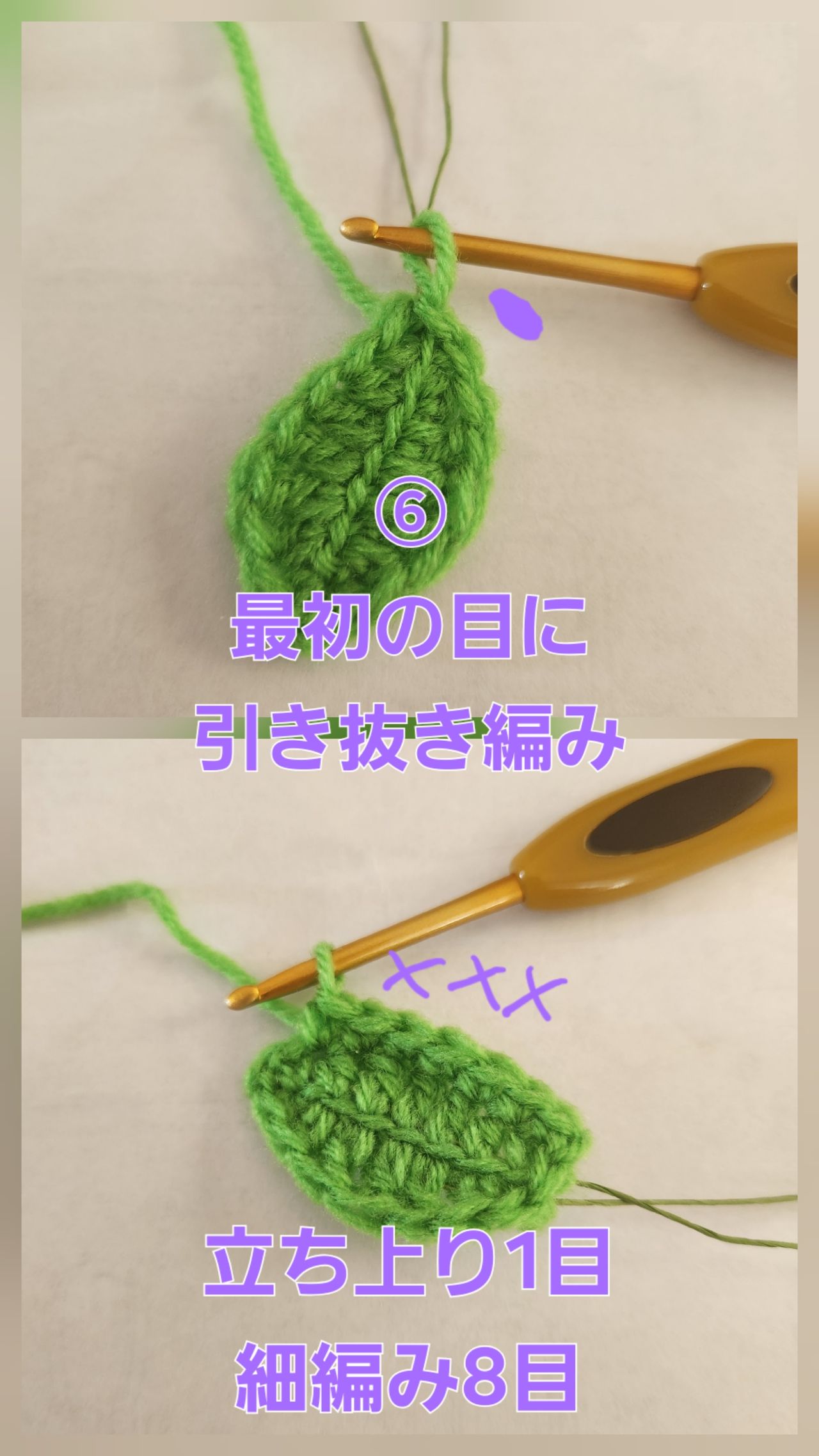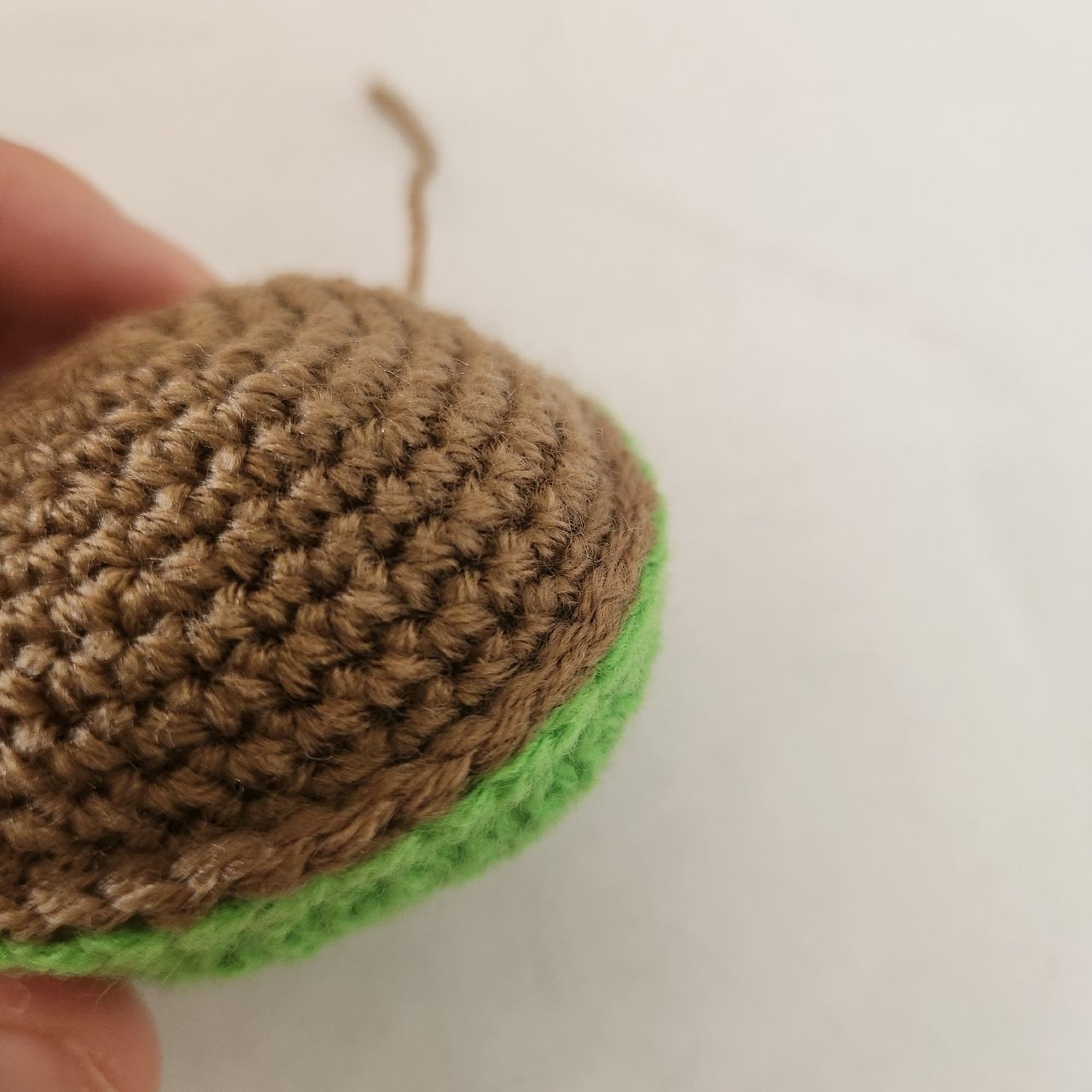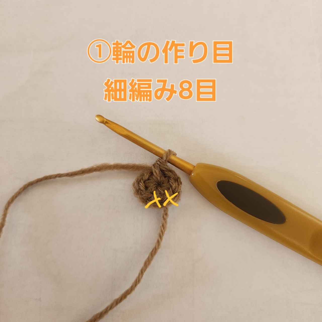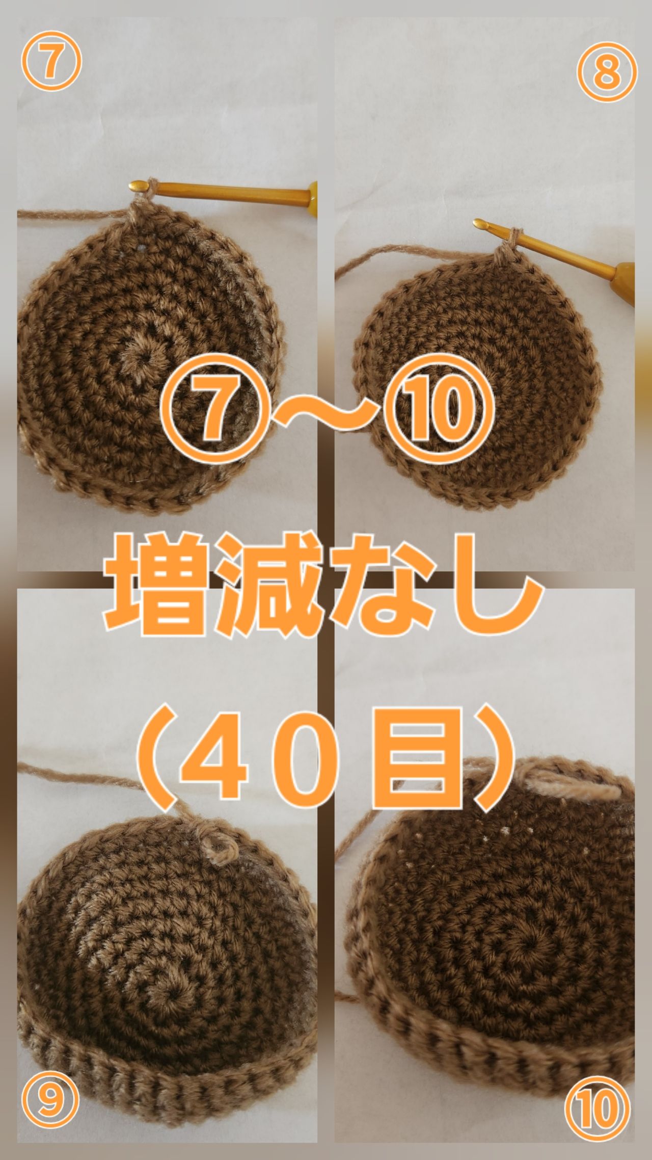 残しておいたうす茶の糸で引き抜き編みをしていく。