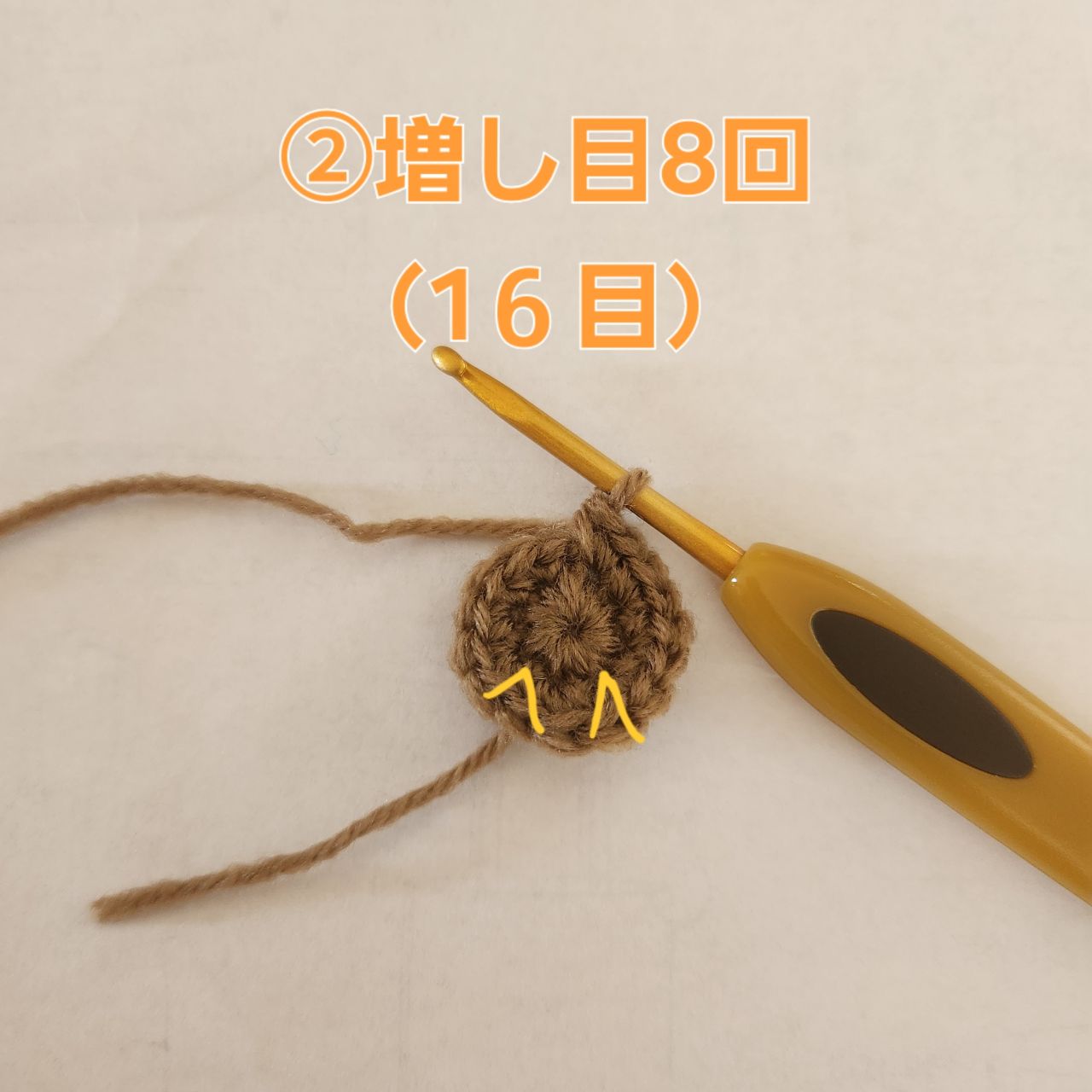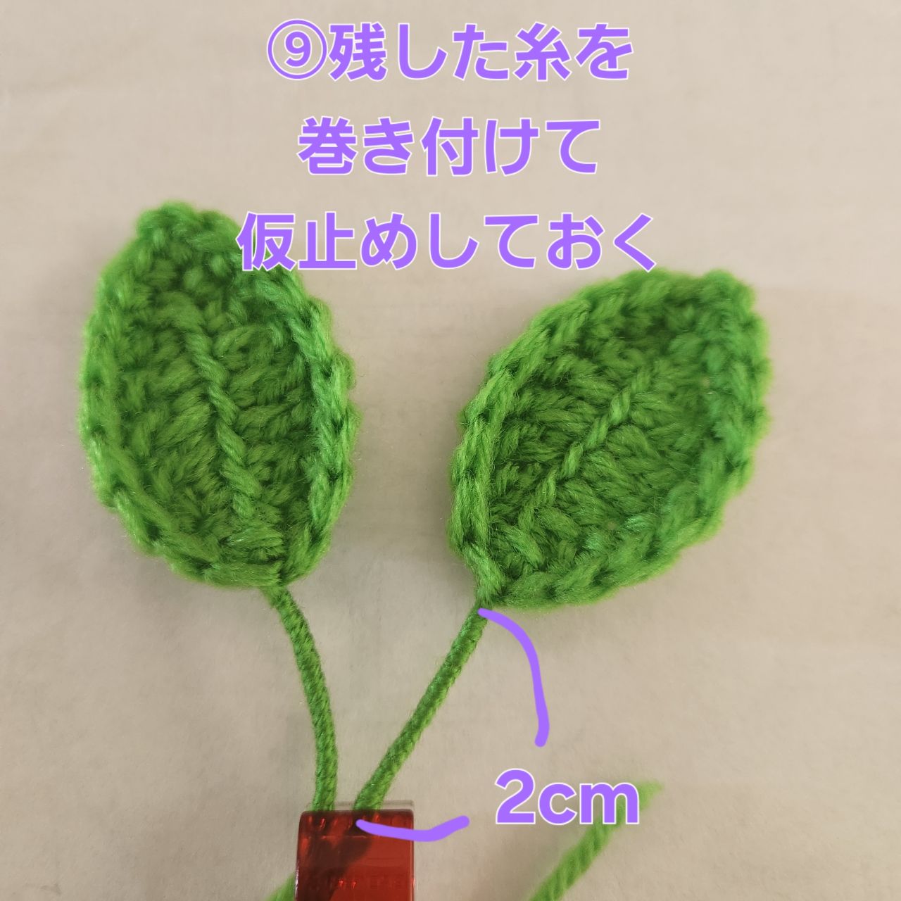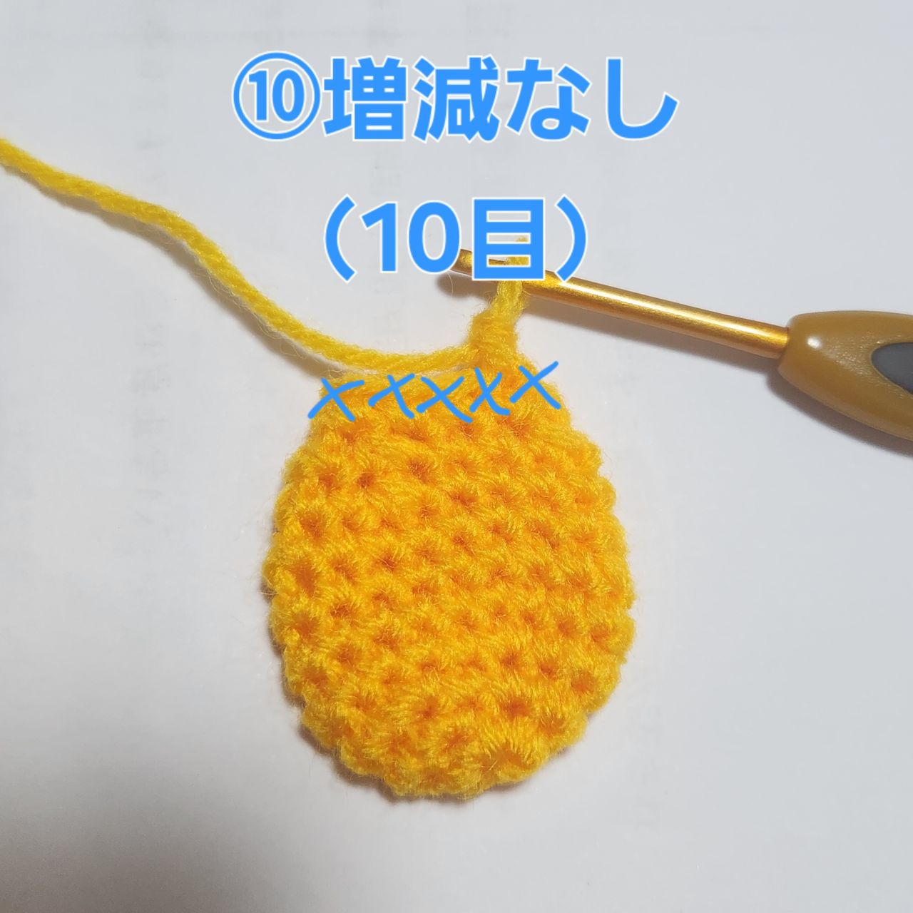 口を黒でくさり編み10目編み、バランスを見ながらとじ針で目と口を付ける。