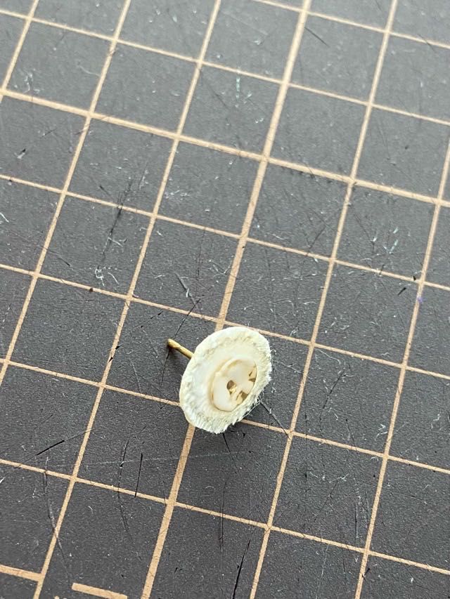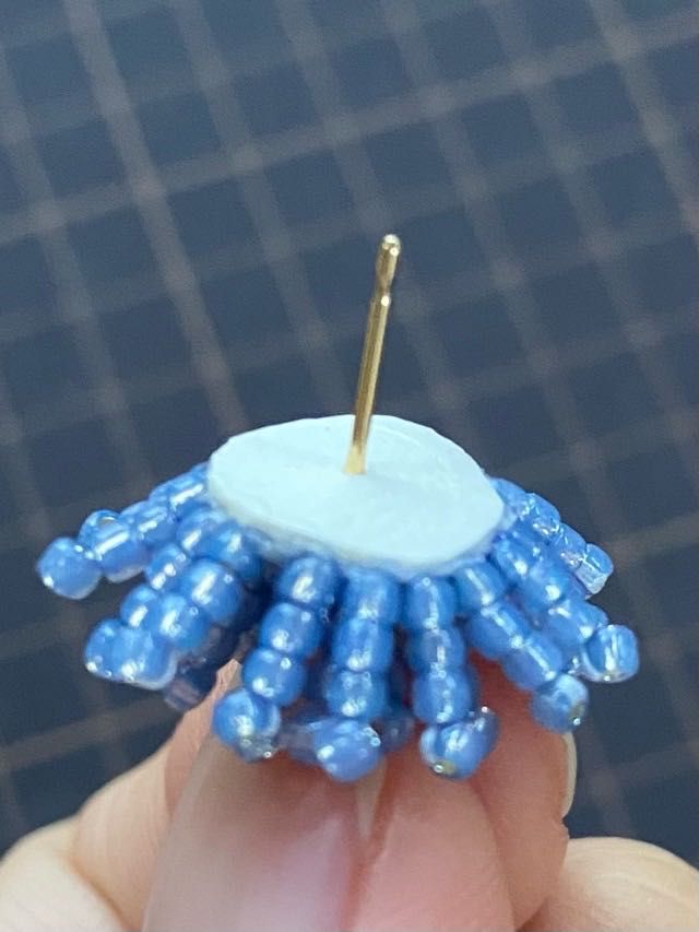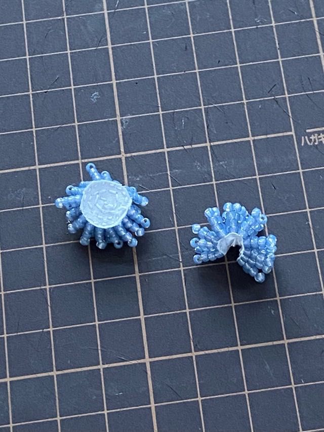 丸皿ピアスを切った合皮に刺して、接着剤で固定します。