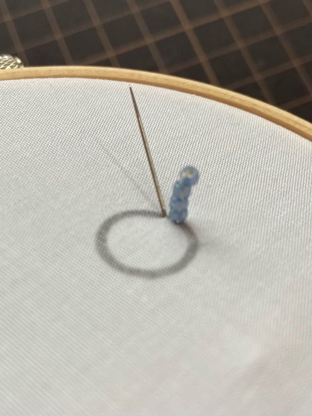 ③最後に通した4つ目以外の3つのビーズに針を通します。
