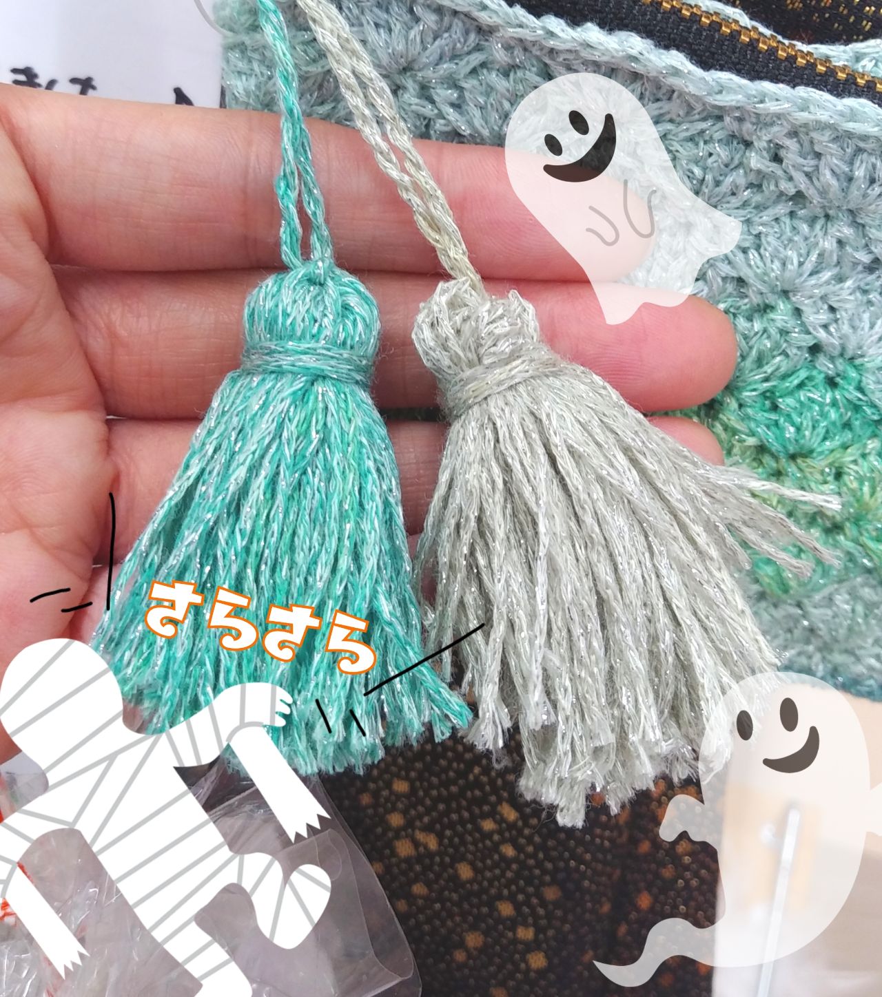 展示している『ちっちゃいポーチ』の編み図入りの物もあります。