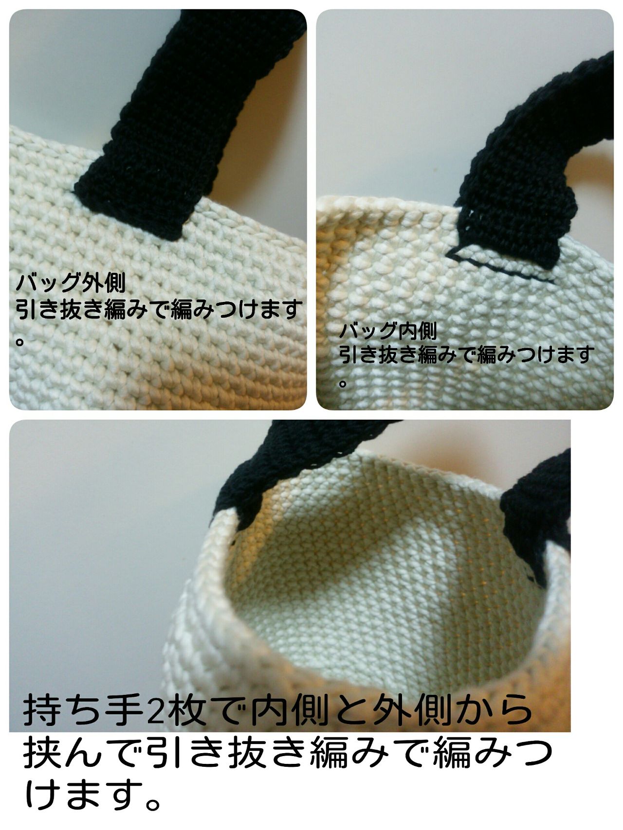 ⑦2枚の持ち手を合わせて、引き抜き編みで持ち手の端っこを1周編み合わせます。