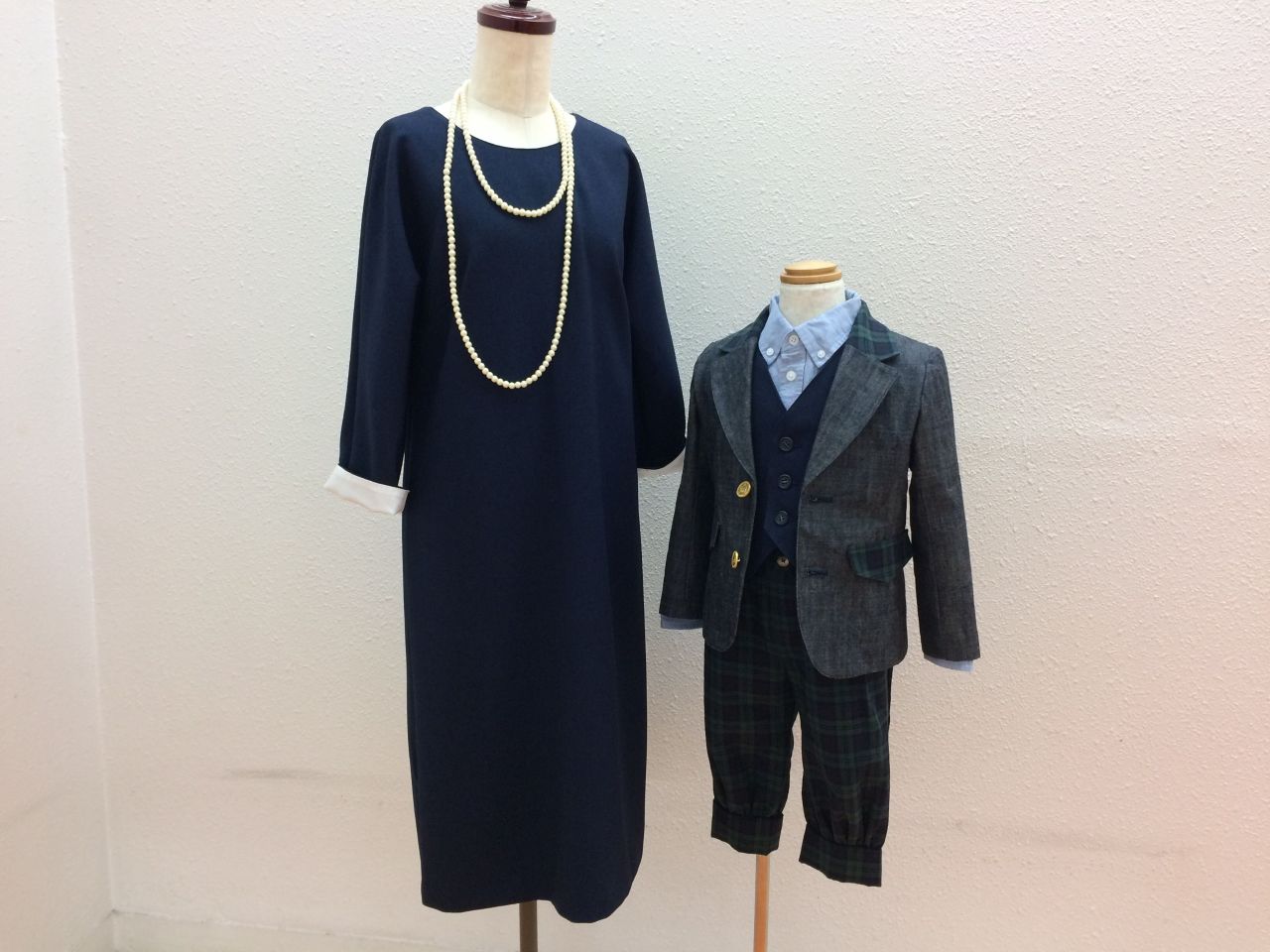 セレモニーに着ていける、上品なワンピースです。男の子のベストも共布で作りました。紺のワンピースは、学校行事に欠かせないアイテムです。男の子とベストがお揃いなので、一緒のお出かけにも素敵ですね。