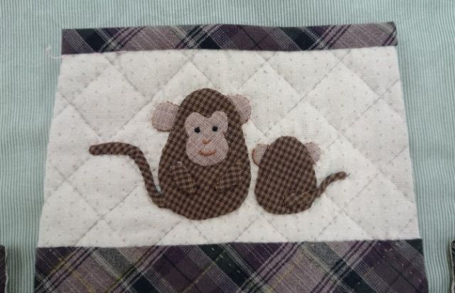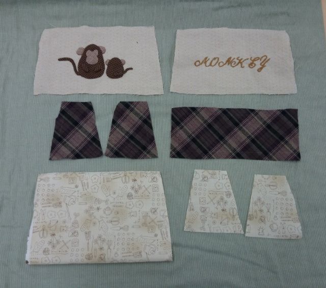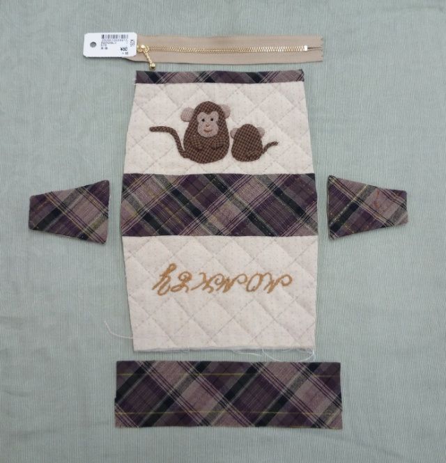 表生地に猿のアップリケと刺繍をします。