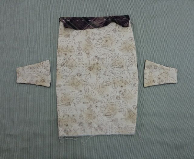 ②表生地と裏生地を中表に重ね、その間にキルト芯を挟み両脇を縫い、表に返します。
