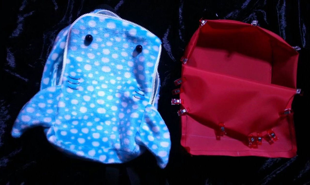 甚平サメの表布のリュックの中に、裏布で作ったリュックを落とし込みます。