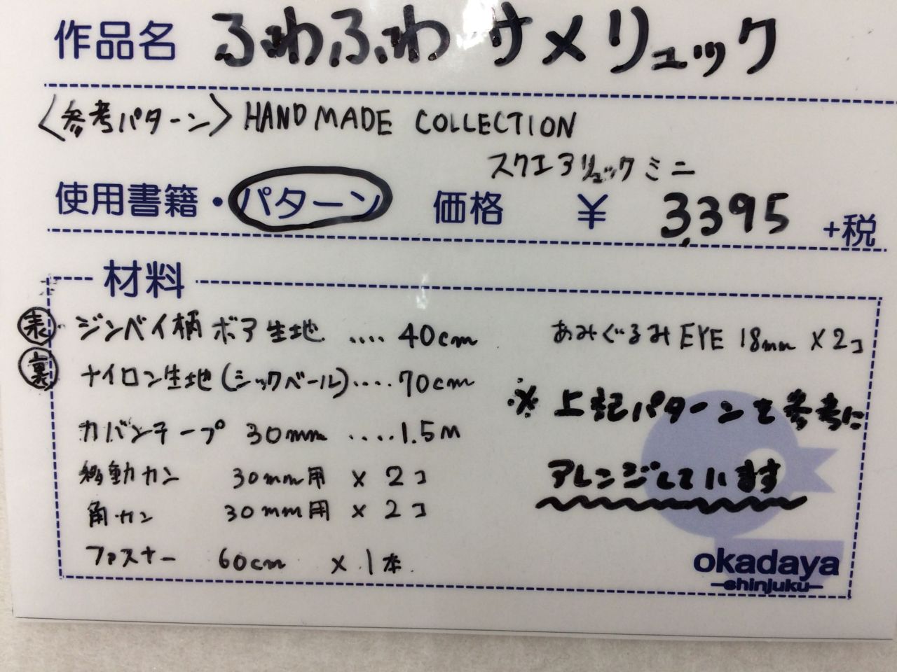 背中のリュックのヒモ・移動カンファスナー等は、町田店4階に、お取り扱いがあります。目玉は黒い『あみぐるみEYE』¥80+税使用しています。こちらは、B1にご用意しています。ファスナーも表布のファスナーマチに縫い付け、目になるボタンも縫い付け、表布のリュックを完成させておきます。