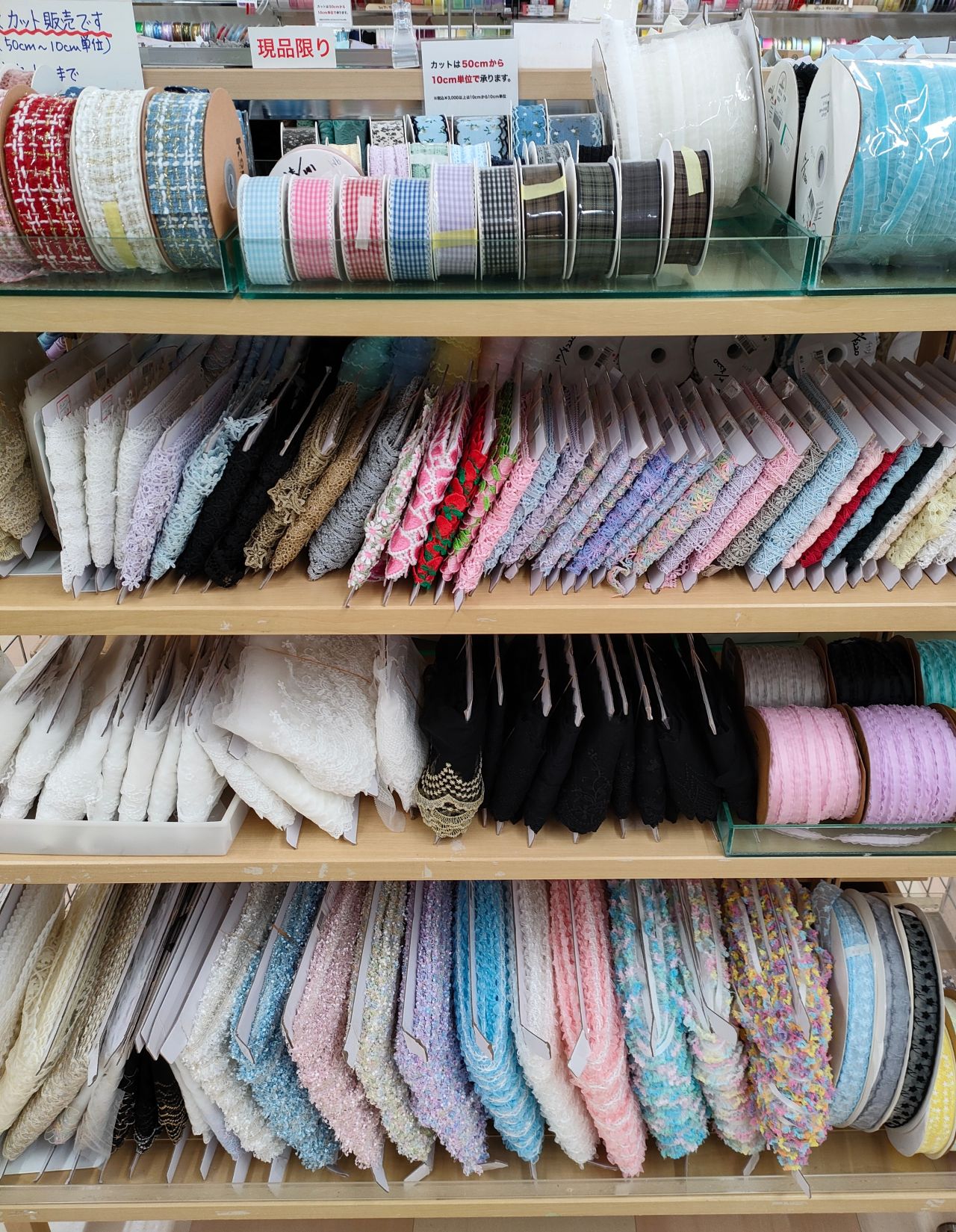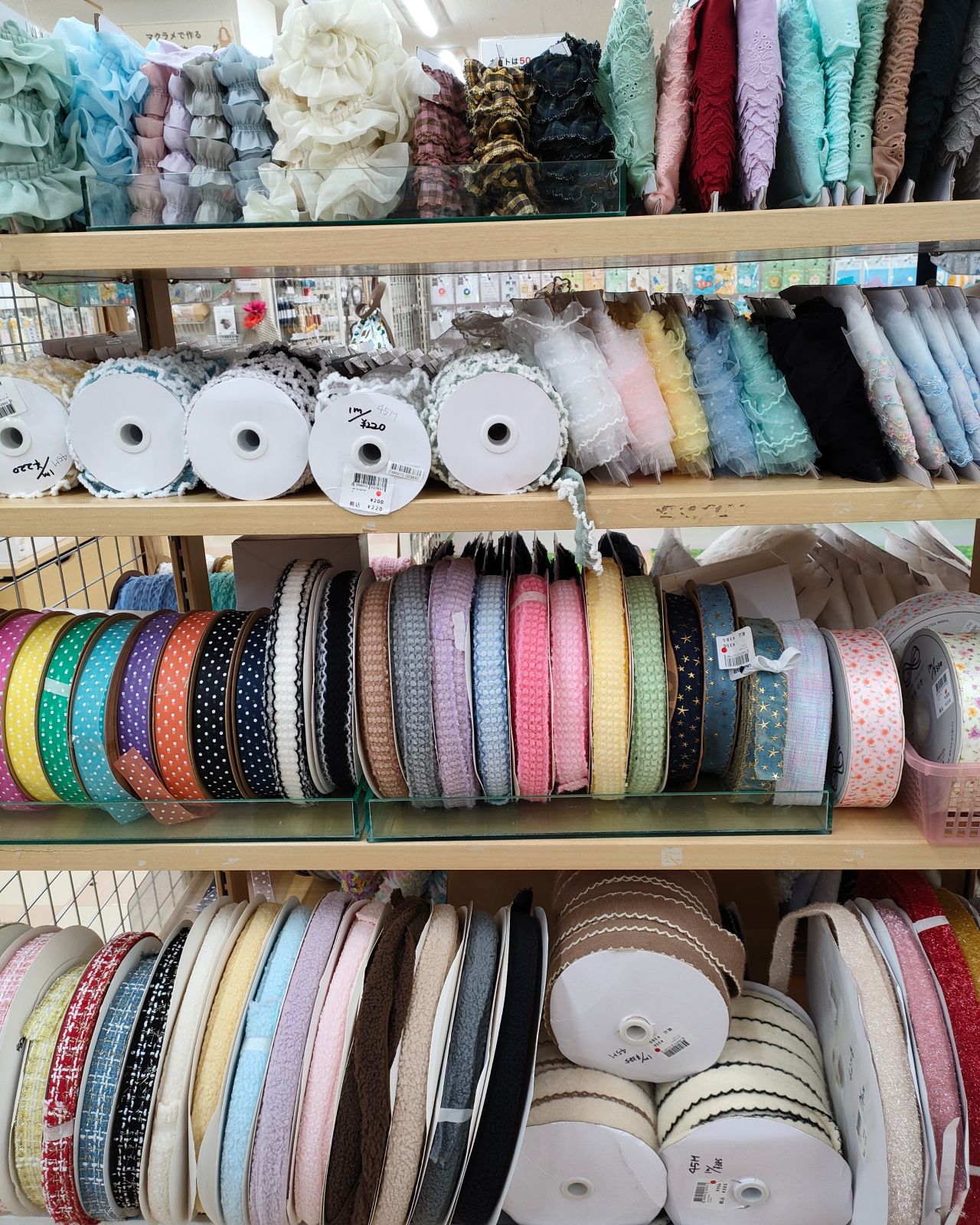 棚にぎっしりと陳列されたリボンたちをぜひ見にきてください。