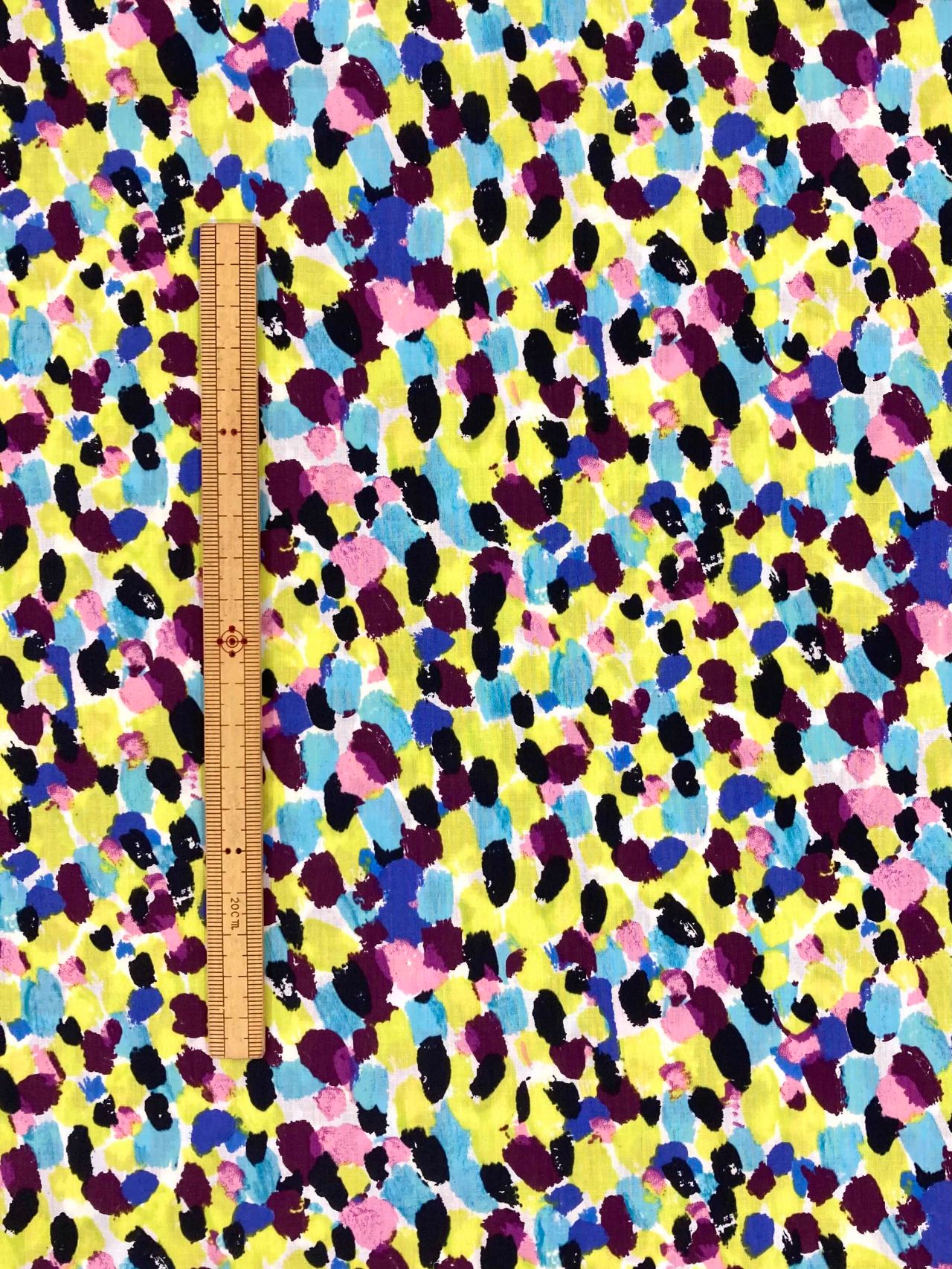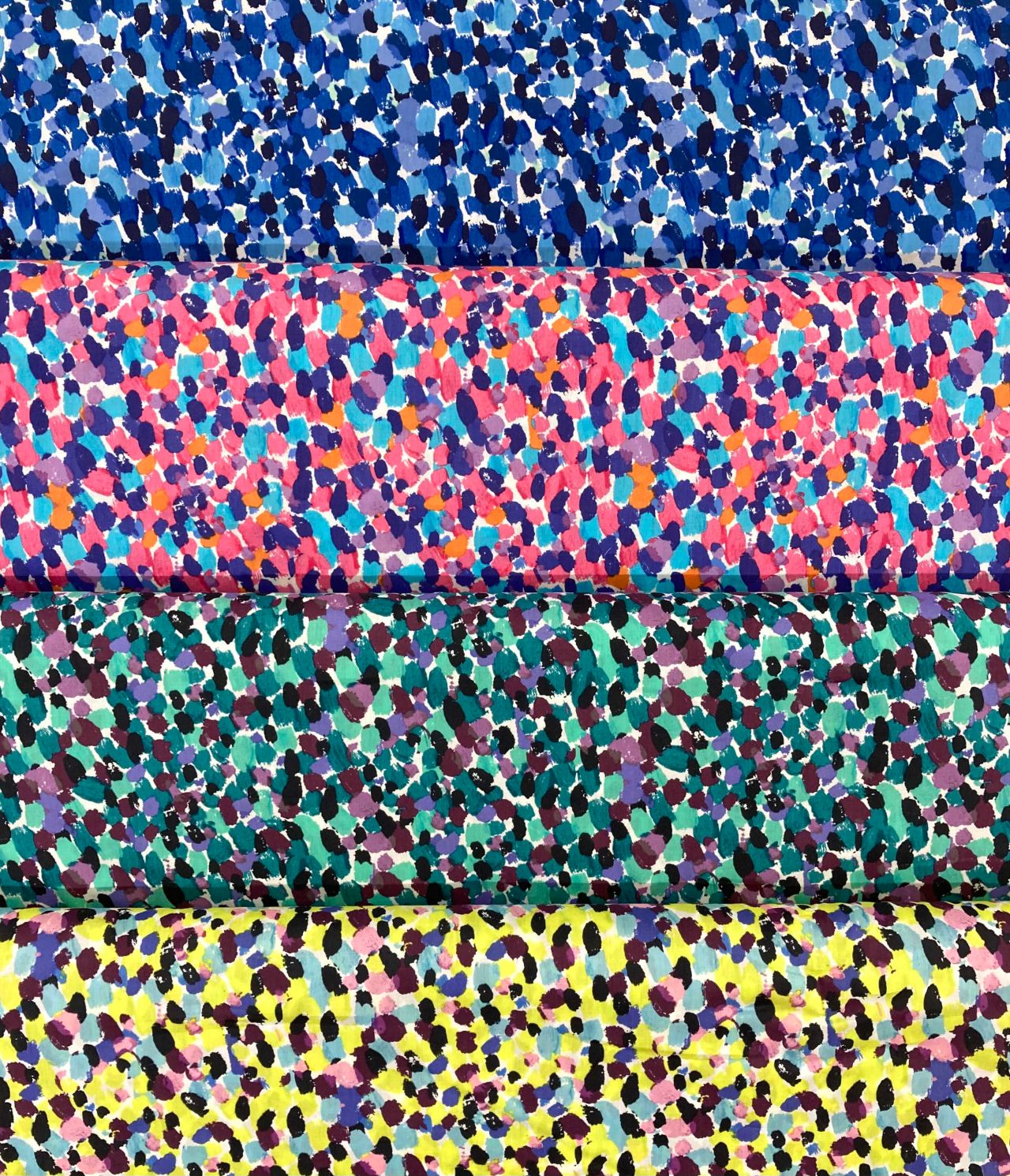 柔らかいパステルトーンのオイルペイントを塗り重ね、霧の深い霧の深い朝の露しずくを描写した、アニマルプリントに近い印象の柄です。