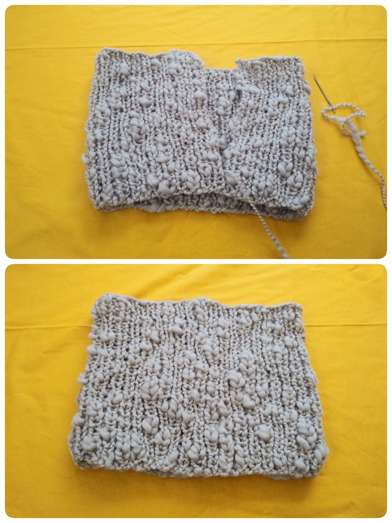 極太毛糸3玉を使用してザクザク編むので、あっさり編み終わります。