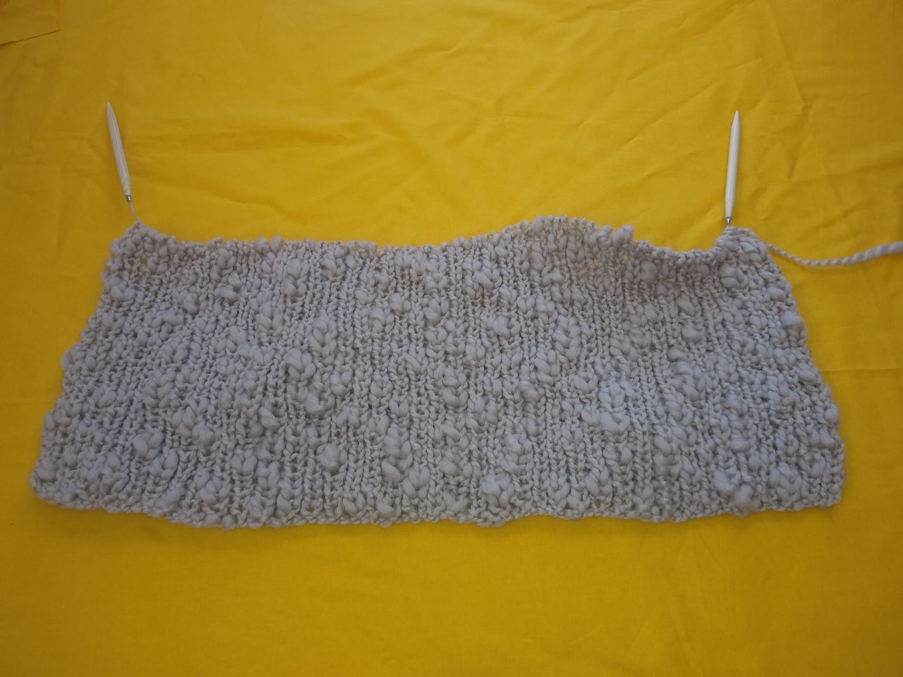 『編み物にチャレンジしたいけど、編み目が揃うか不安』という初心者さんにオススメします。ポコポコした編み地が特徴的です。