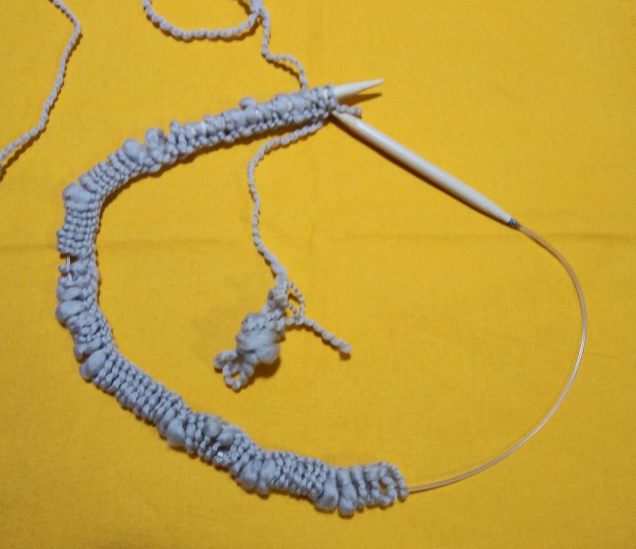 *編み図には棒針で記載されていますが、今回私は『輪針』を使用して編んでみました。
