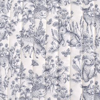 古典的なトワルドジュイ柄に、女性が好きな草食動物や愛らしいトイプードルを入れた柄です。