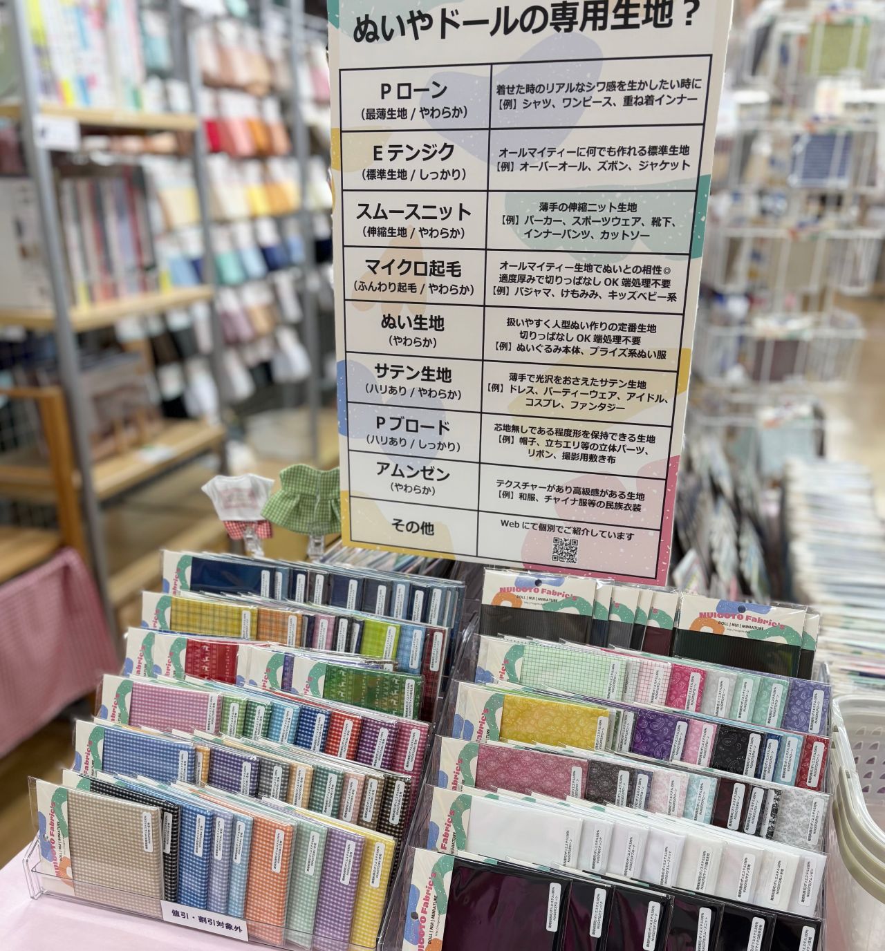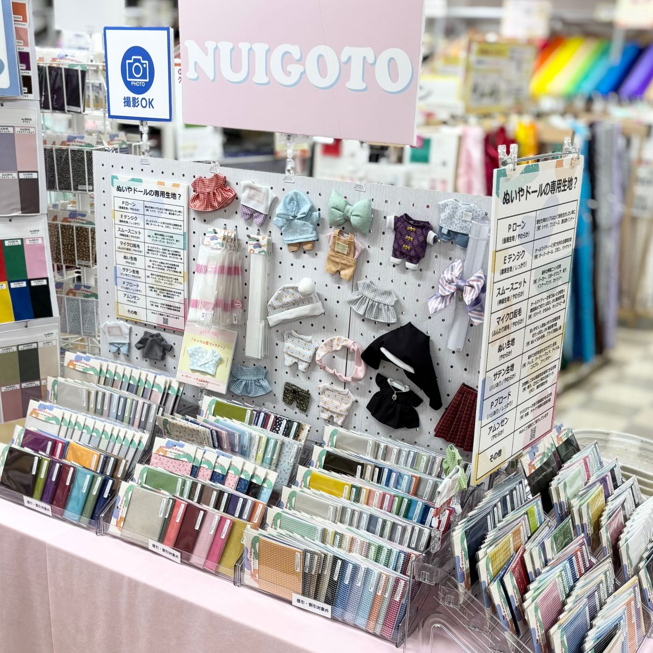 売り場には色とりどり種類豊富なカットクロスがずらりと、見ているだけでもワクワクするコーナーになりました!