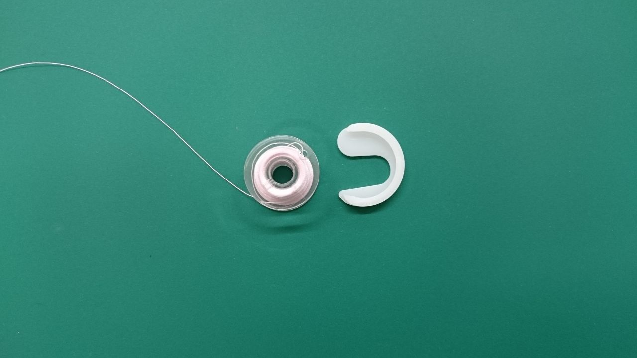 ボビンの、中央に向かって「いとまる」を差し込む