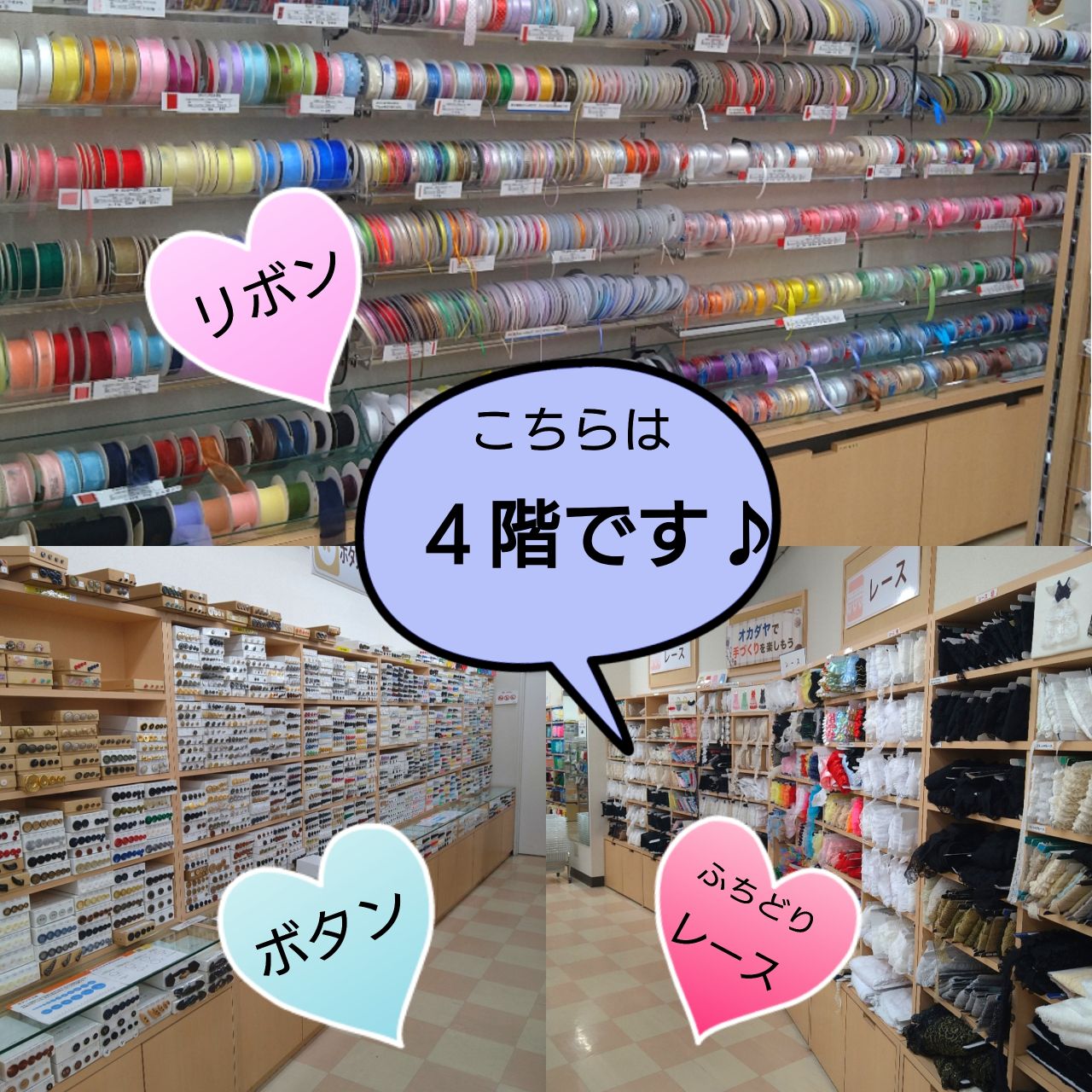 ミシン針や糸、リボンやレースにボタンなどは4階にてご用意しております♪