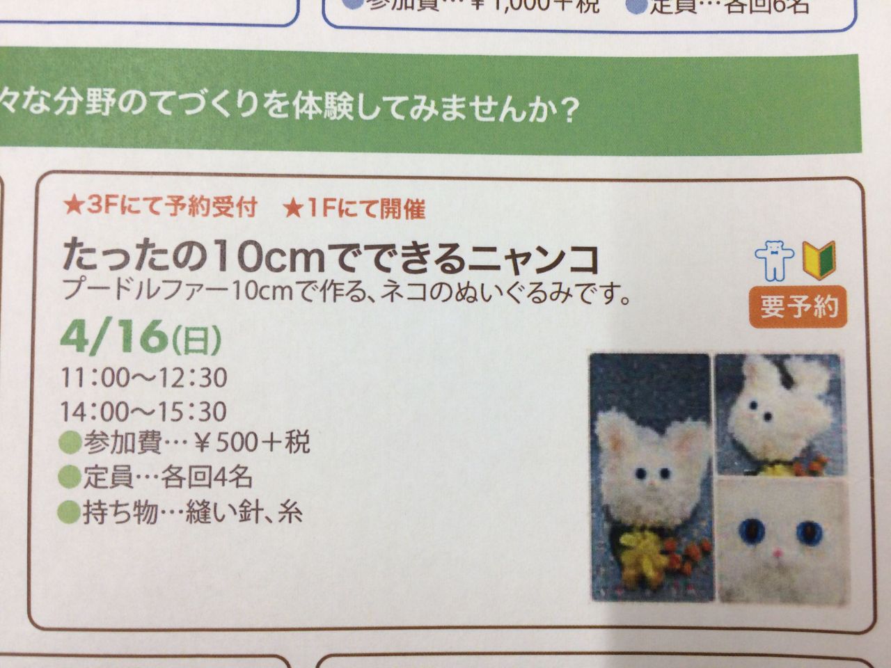 の【手作り講習会】を4月16日に行ないます。是非ご参加下さいませ。
