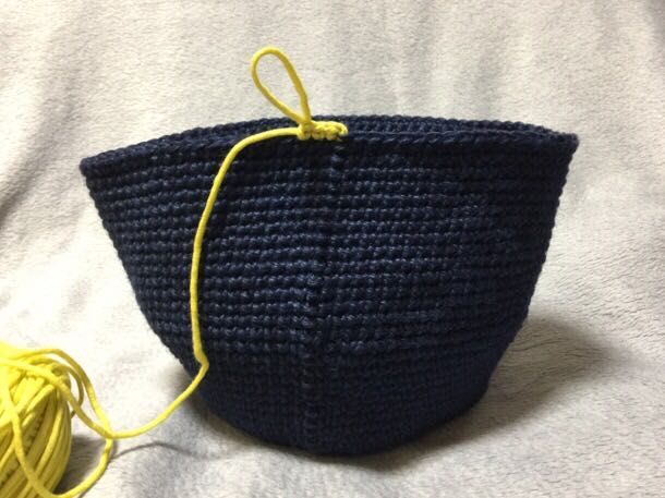 COCONに変えて、側面、持ち手を(4本)編みます。