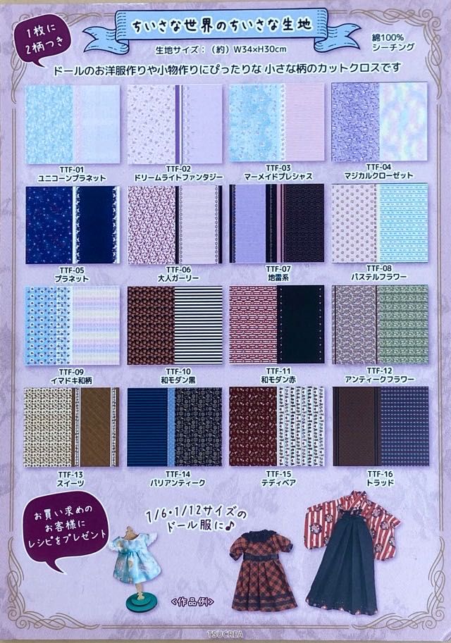 小さい柄のプリントが1/6、1/12ドールのお洋服にぴったり!