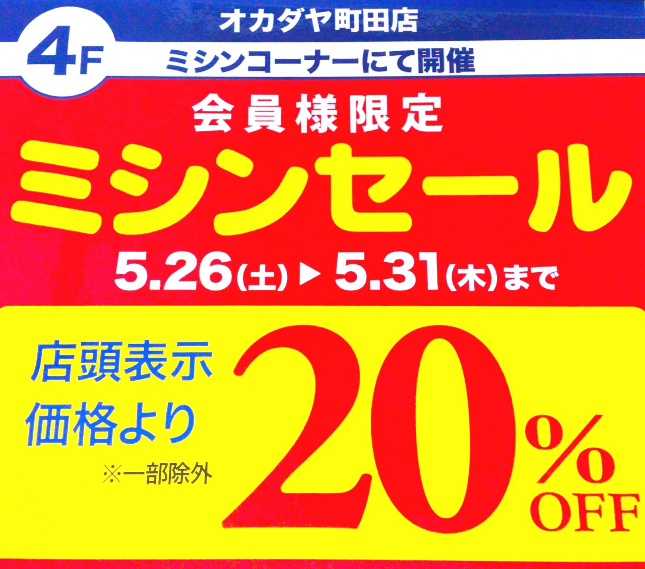 【5/26~5/31まで】町田店にて会員様限定ミシン20%OFFセール開催!!!