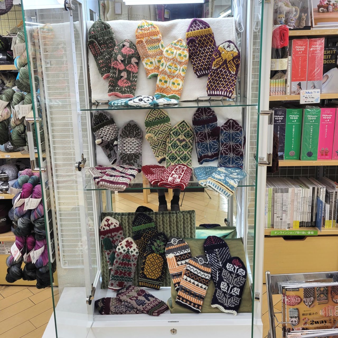 ▼毛糸売場にあるショーケースにて展示中