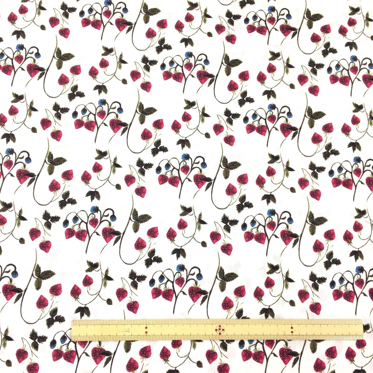 葉や茎の毒々しさが絶妙な、大人なイチゴ柄です。