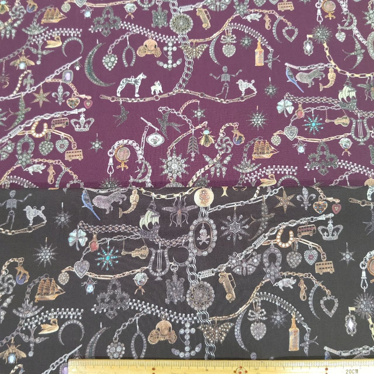この再構築されたペイズリーの複雑なディテールはこのプリントに宝石のような印象を与えます。
