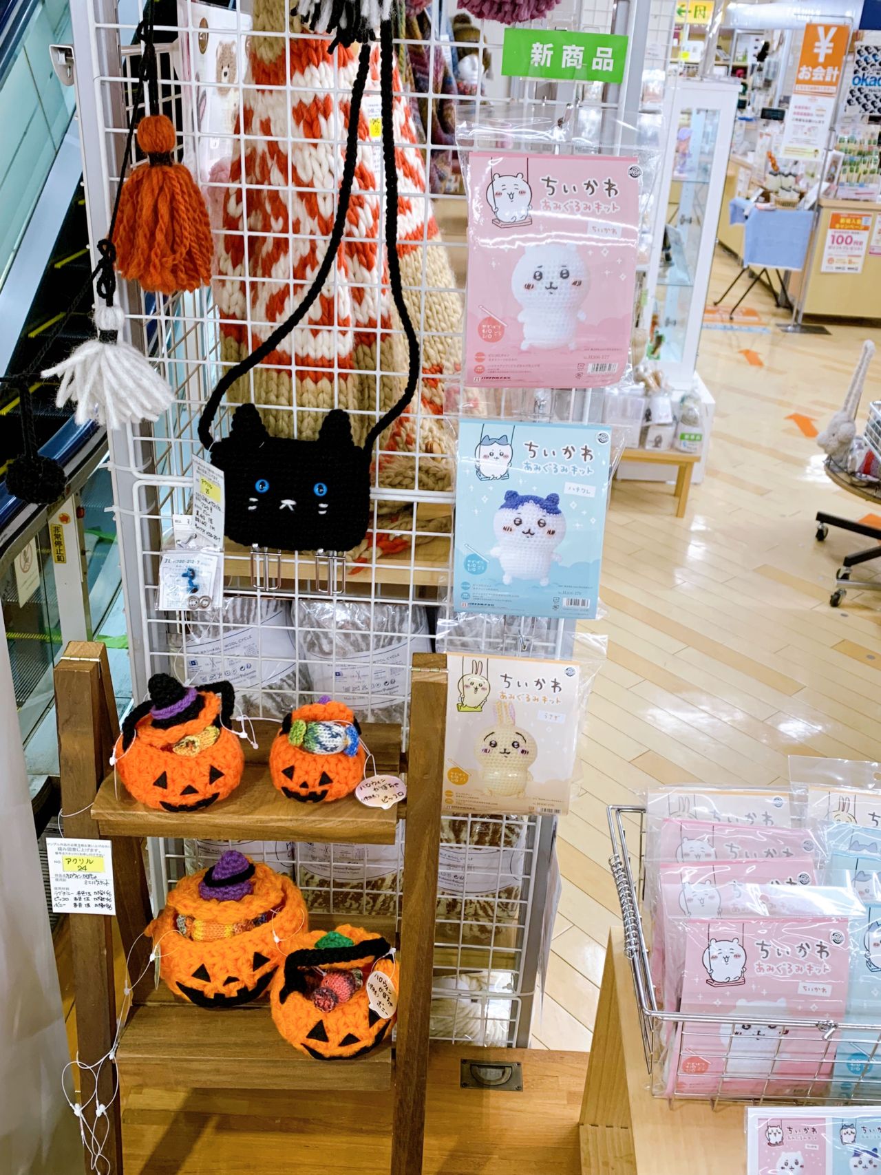 町田店では、ハロウィンと並んで、可愛い編み小物のコーナーにございます。