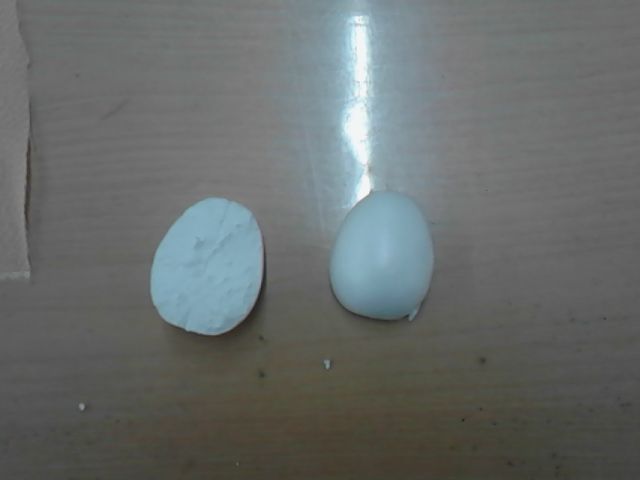 まず、4cmの卵形スチロールを真ん中から切ります。