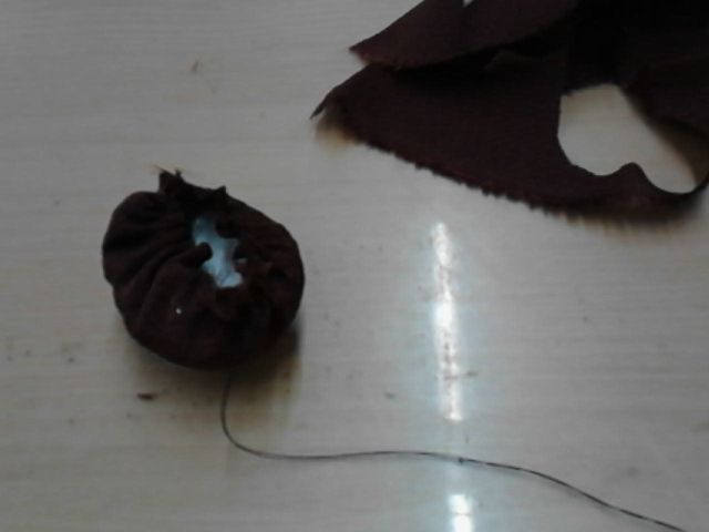 ちりめんのまわりをぐし縫いして縮めます。
