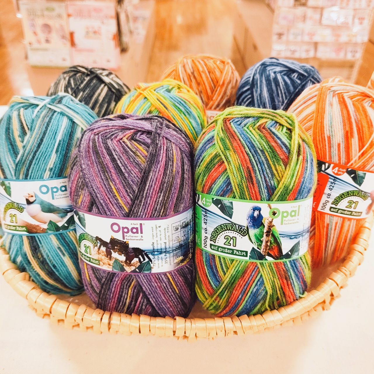 本日は、カラフルな段染めのカラーが人気のソックヤーン、Opal(オパール)毛糸のコーナーからおすすめの商品をご紹介いたします。