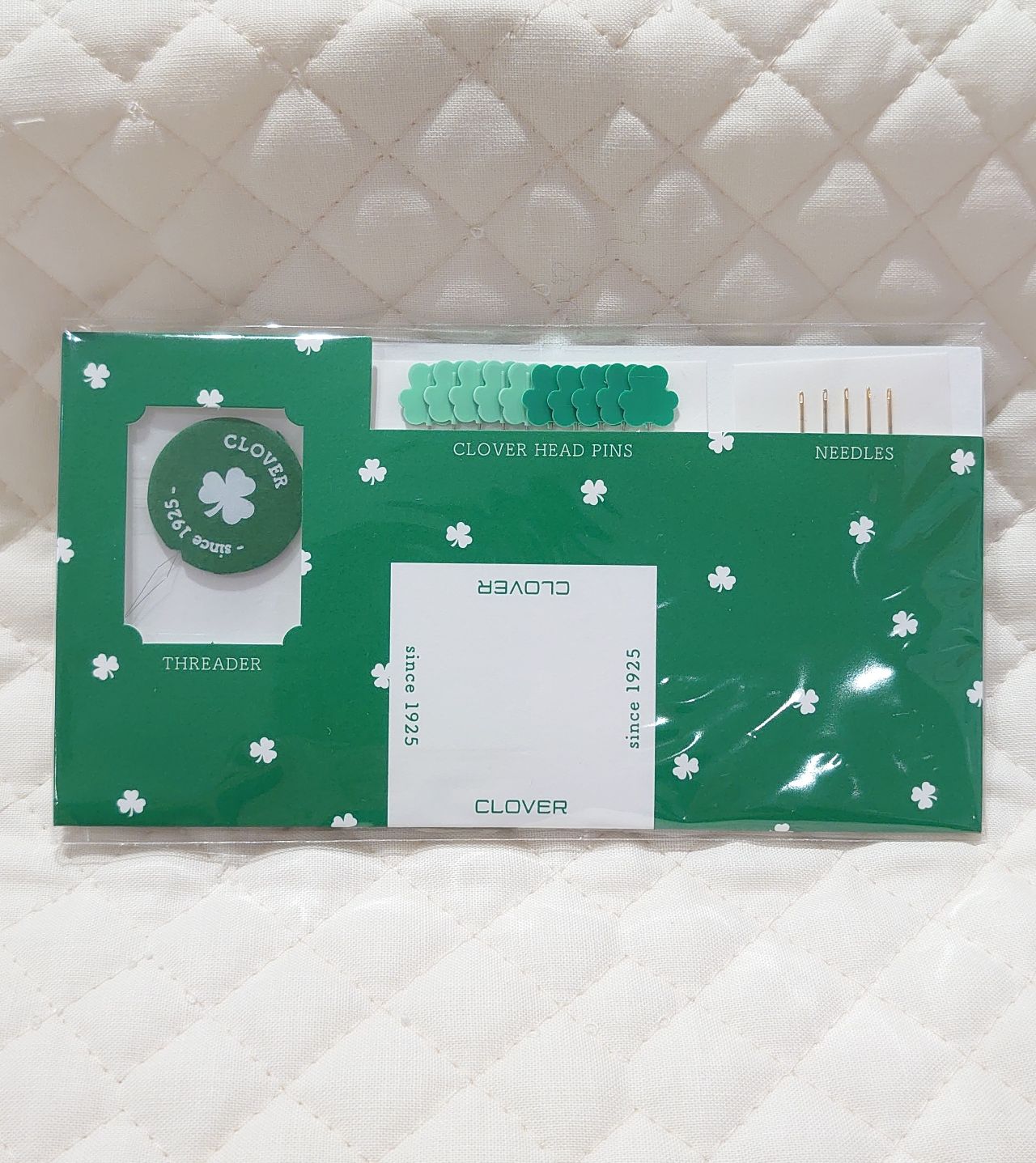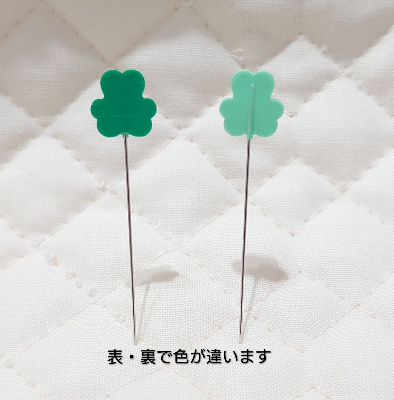 クロバーモチーフが付いた待ち針・スレダーと、縫い針のセットですカワ(・∀・)イイ!!