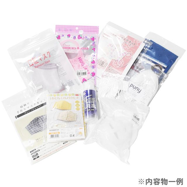 布マスクキットやゴム紐、完成品のマスク、抗菌グッズなどなど…