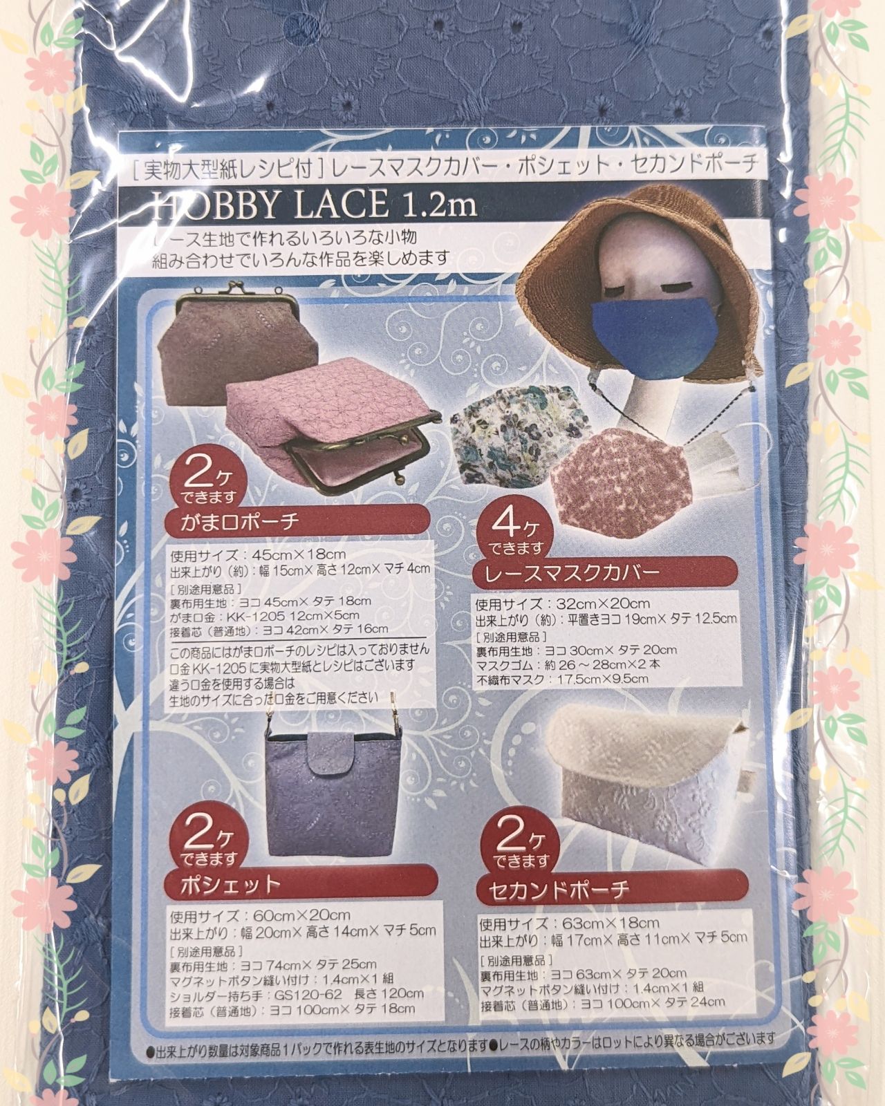 生地は全て約110cm×約50cmで、ポーチや巾着、バッグが作れます。