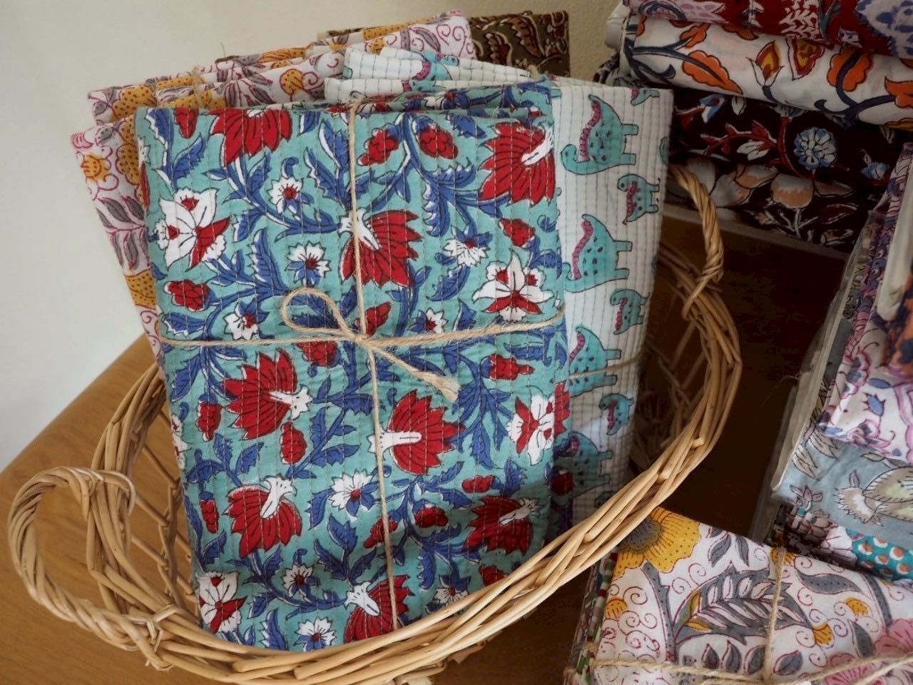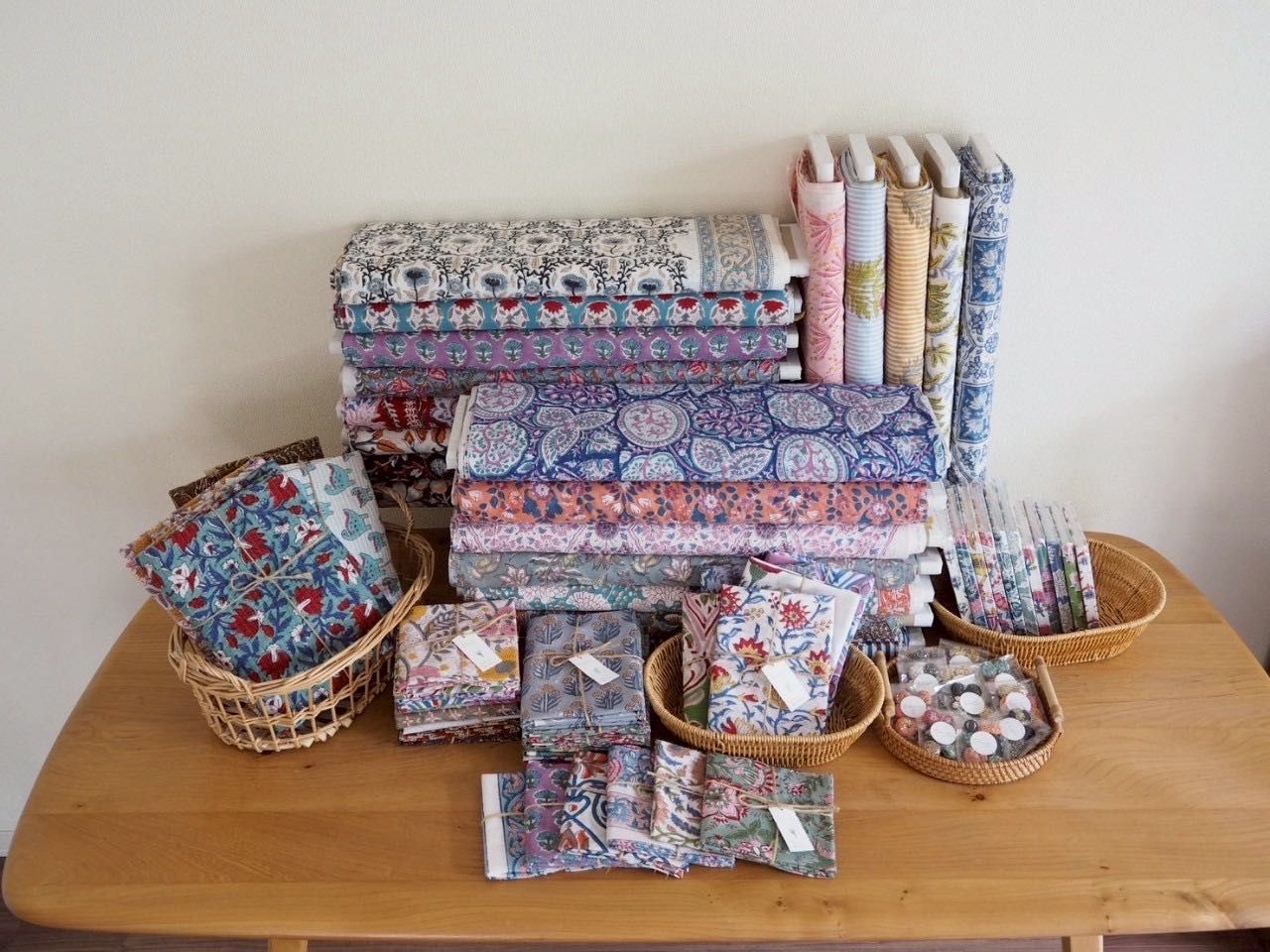 インドから買い付けたハンドブロックプリントで作ったおようふく、生地、雑貨のお店。