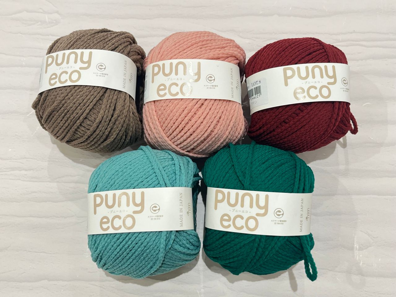 puny、puny ecoはどちらも、もっちりした弾力と軽さが特徴の、編みやすい糸です。