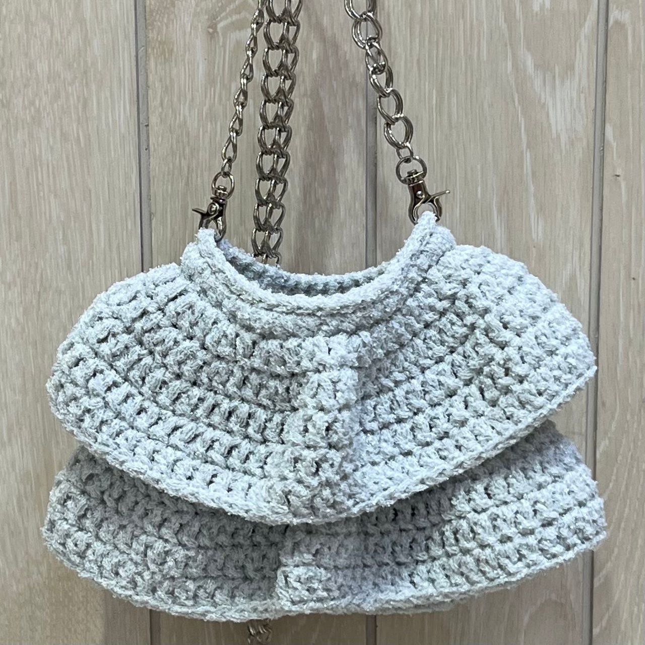 棒針編みのバッグです。